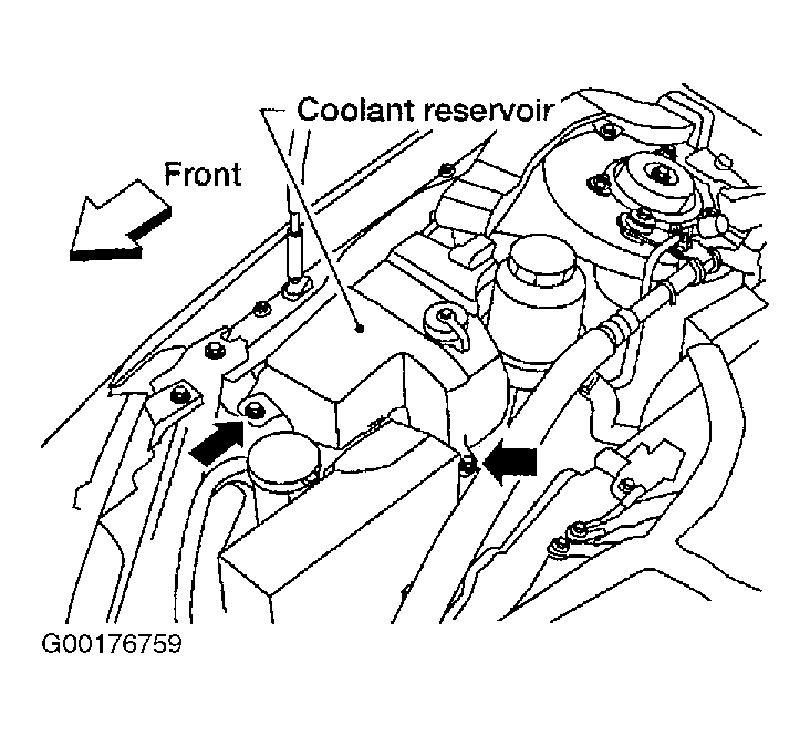 2. Remove 2 bolts and position coolant reservoir aside. See Fig 1 .