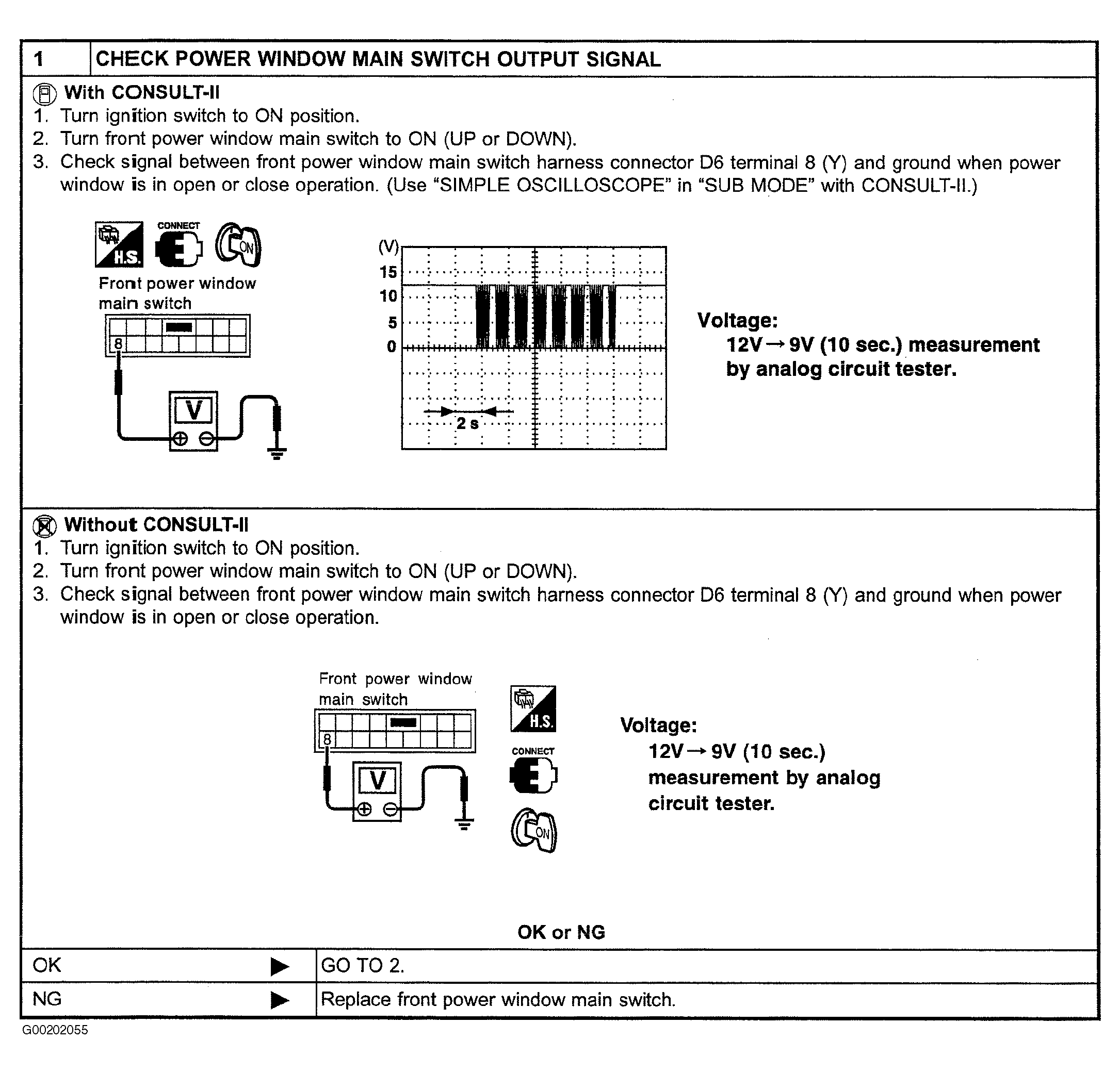Fig 2: Performing Main Switch Operation Check, Passenger Side Window, Step 2 (2002 Model)