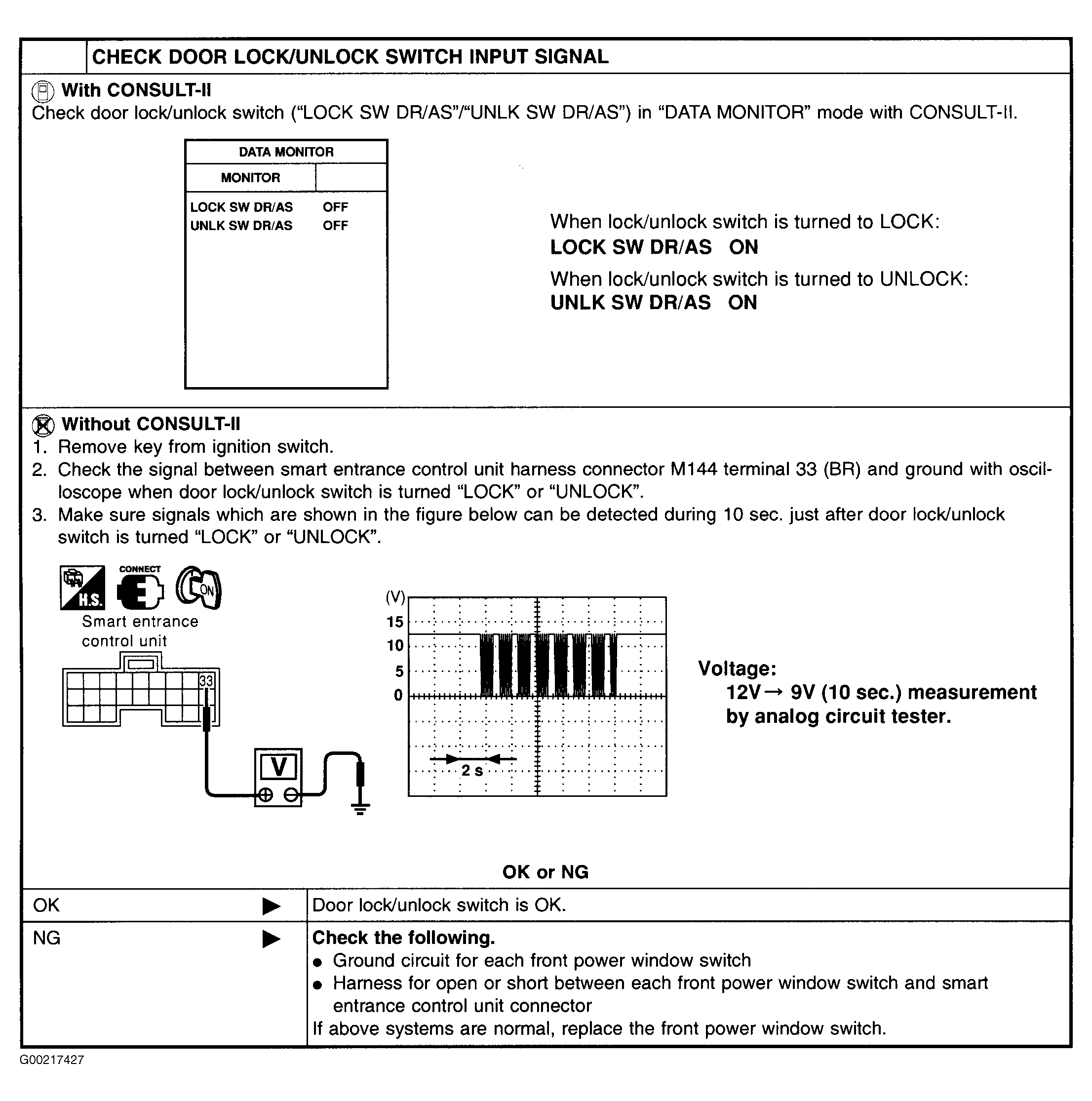 For door lock/unlock switch test, see Fig 1 .