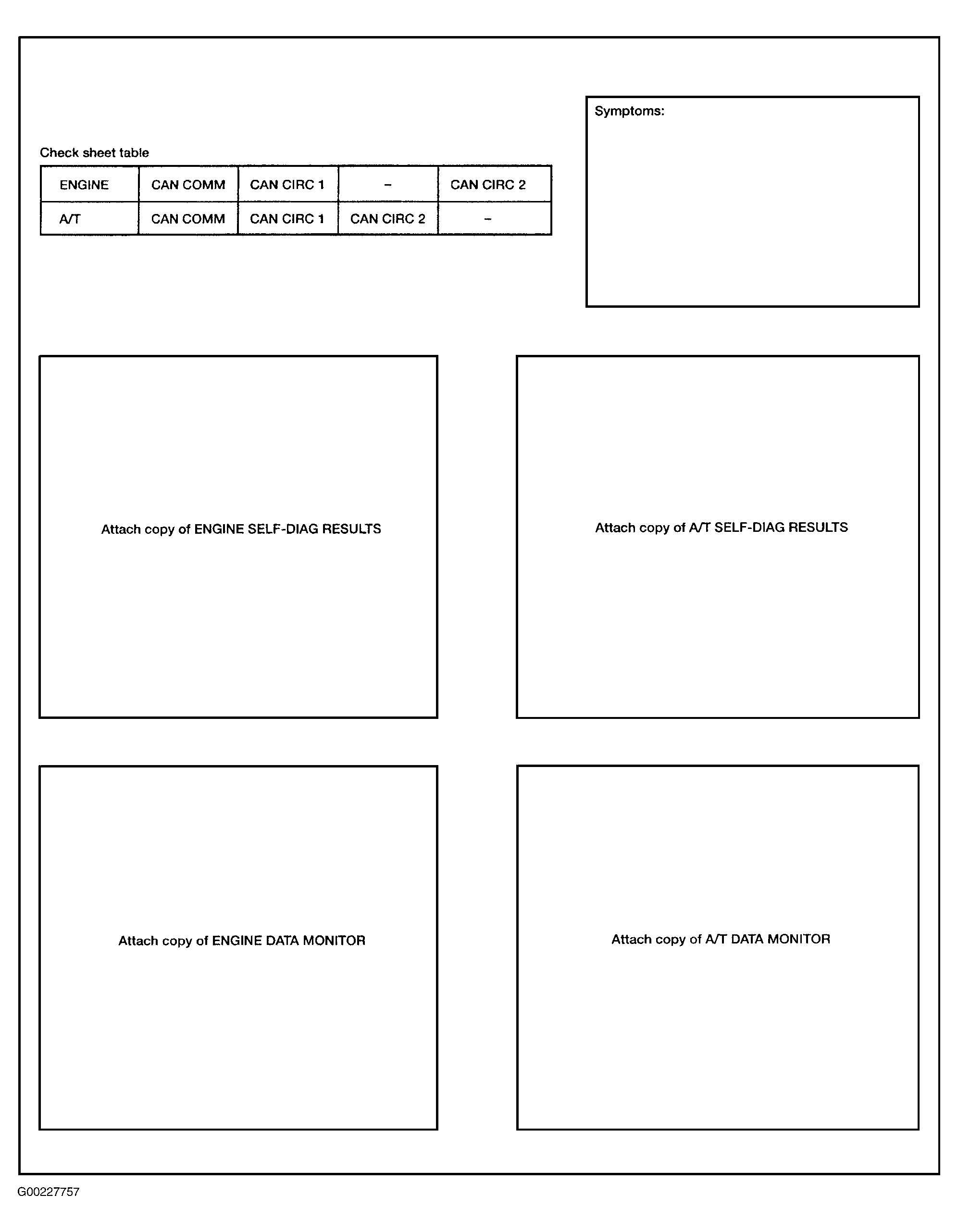 Based on the data monitor results, put "V" marks onto the items with "UNKWN" or "NG" in the check sheet. See Fig 1 and Fig 2 .