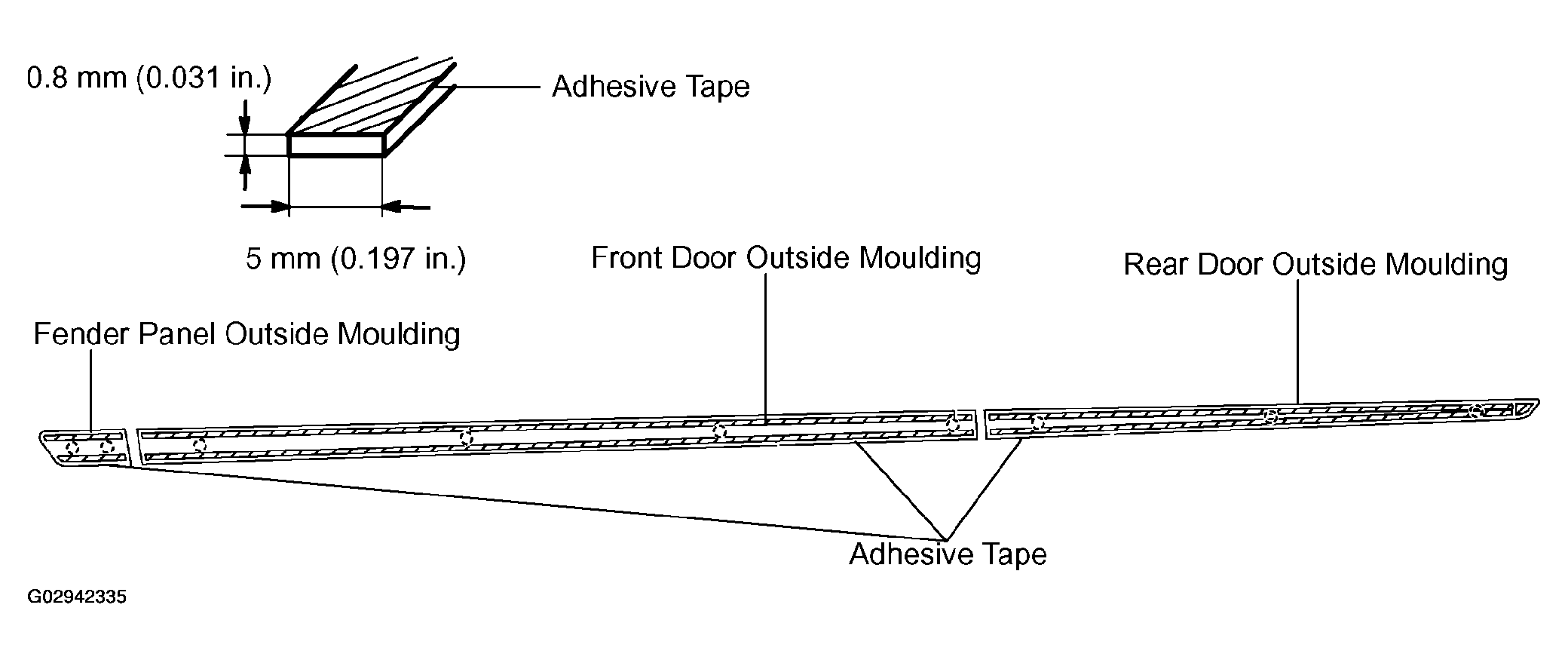- Apply new adhesive tape to the moulding as shown in Fig 7.