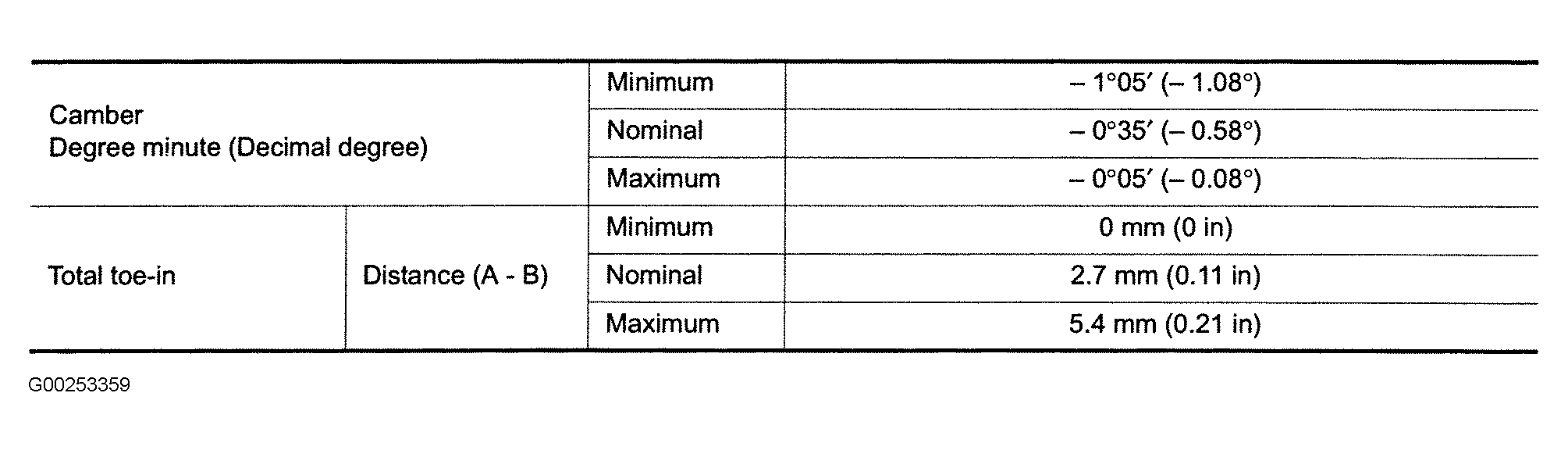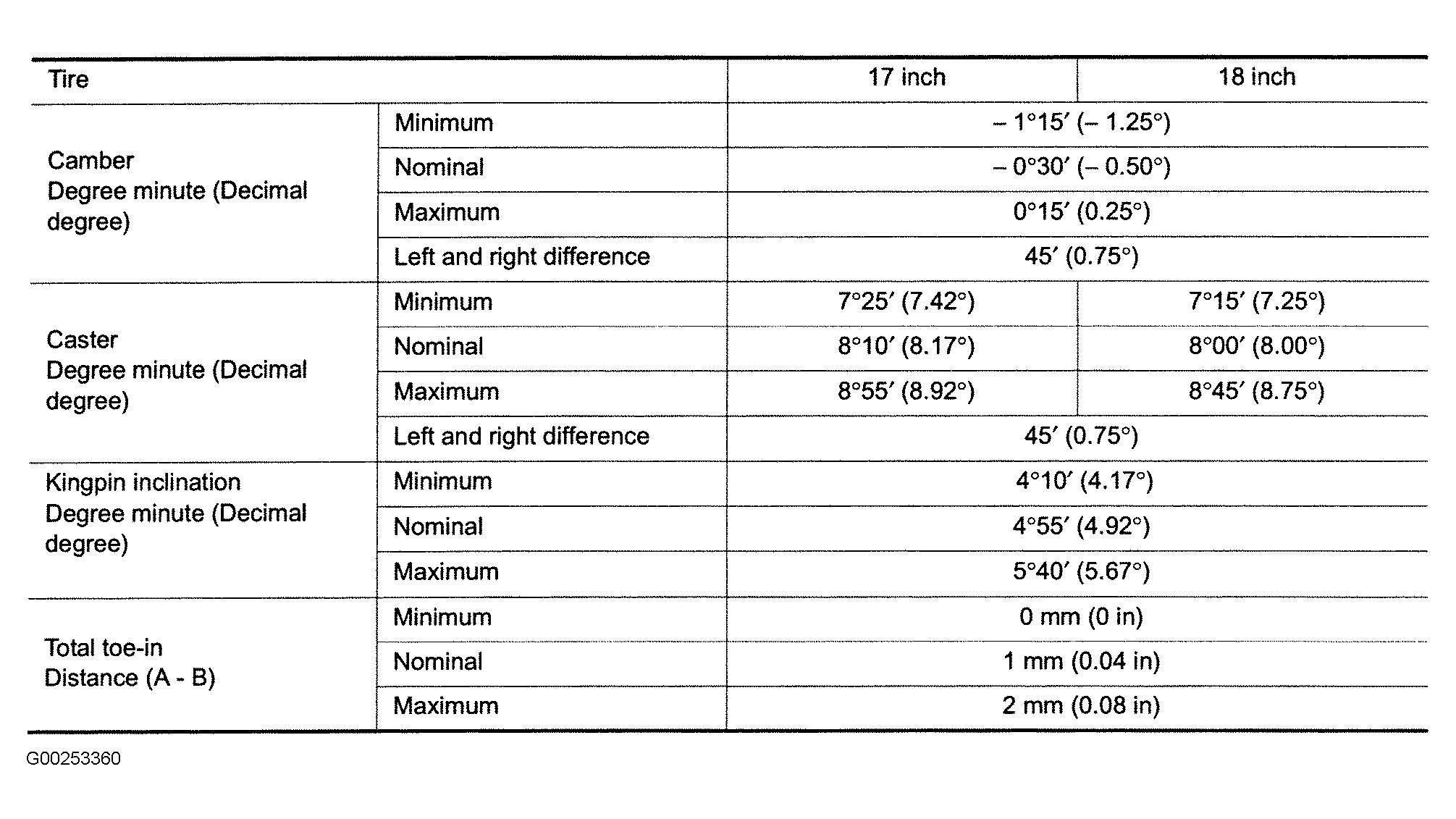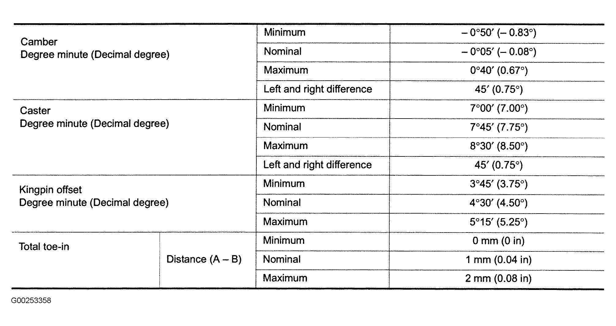 Fig 1: Front Wheel Alignment Specifications (G35 - Coupe)