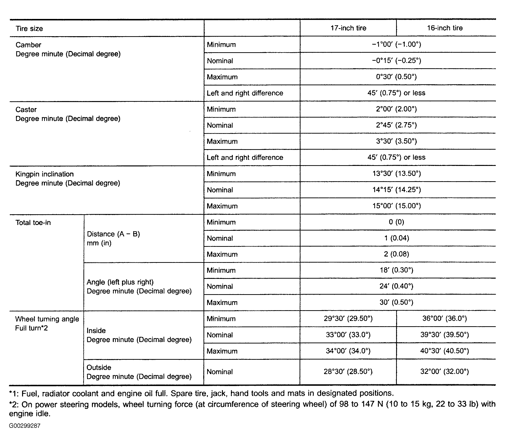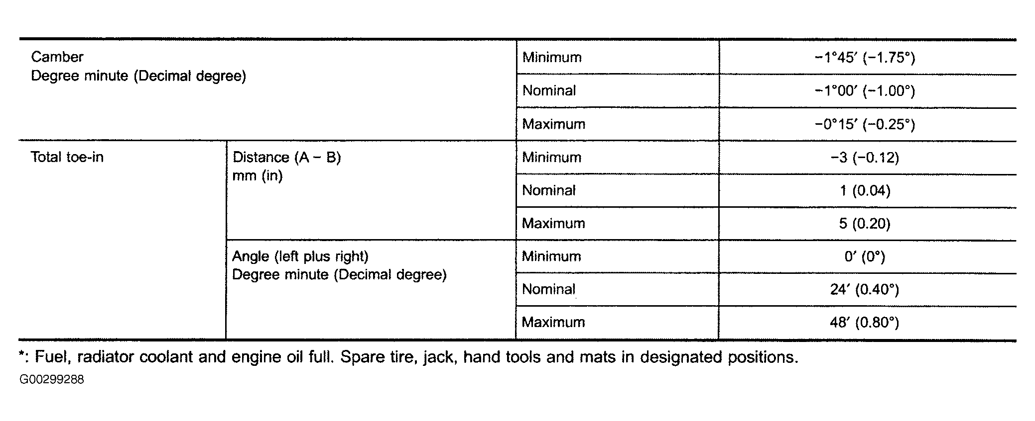 Fig 1: Front Wheel Alignment Specifications (Maxima)