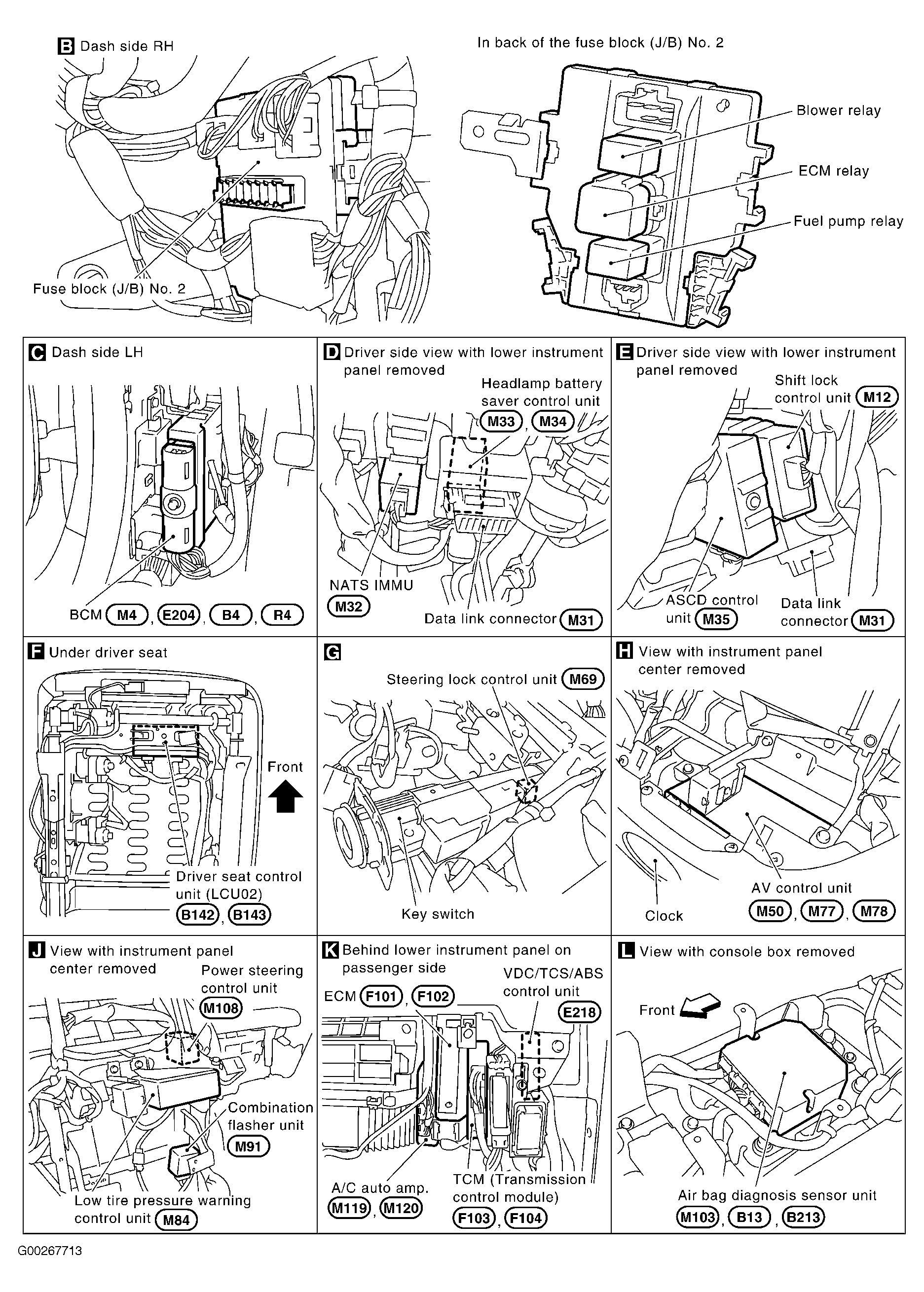 | Fuse Block (J/B) No. 2 | Behind right kick panel. See Figure . |