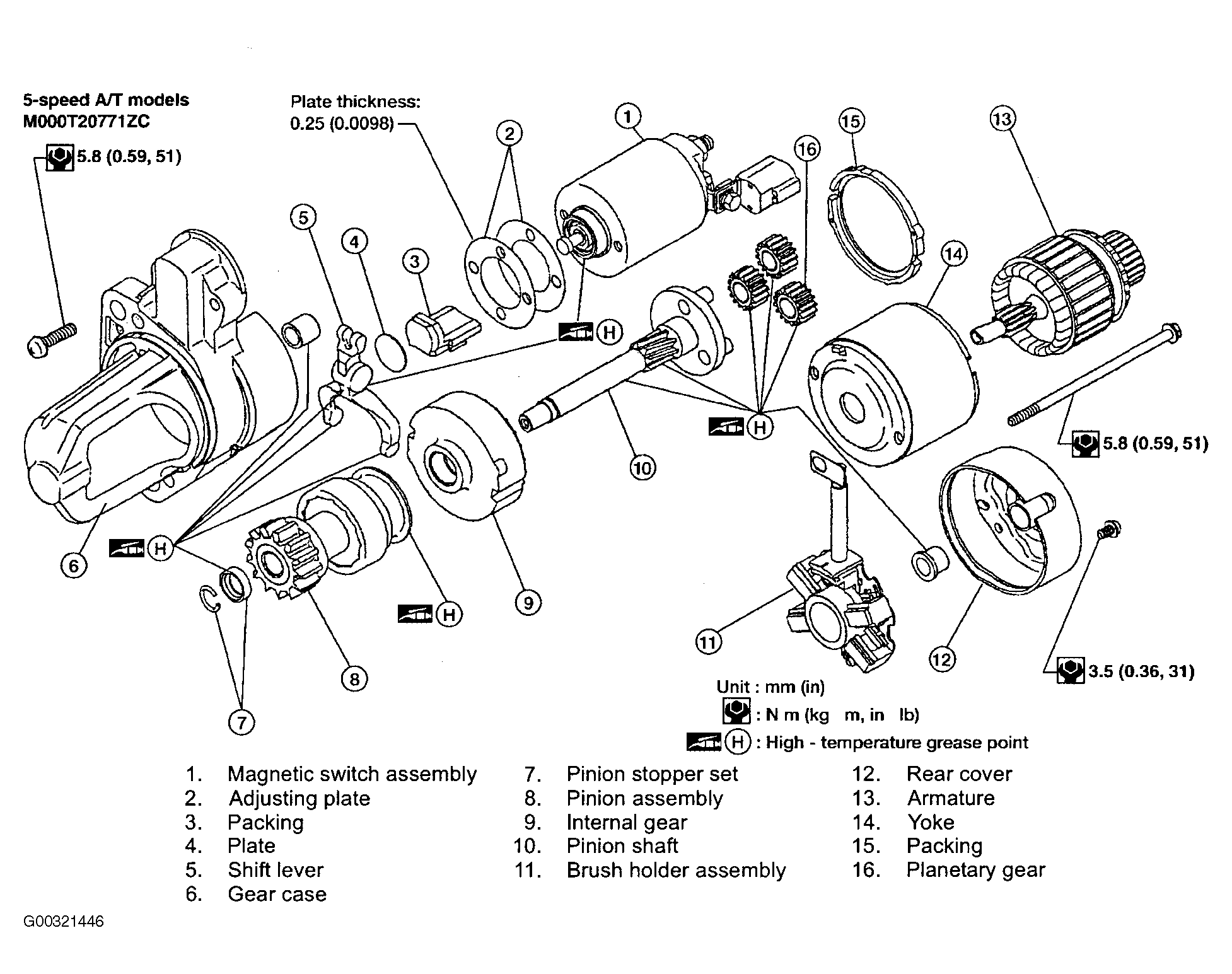 Fig 1: Exploded View Of Starter Motor (5-Speed A/T Model) With Torque Specifications