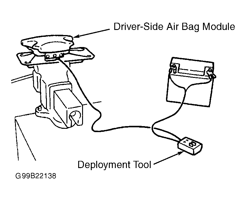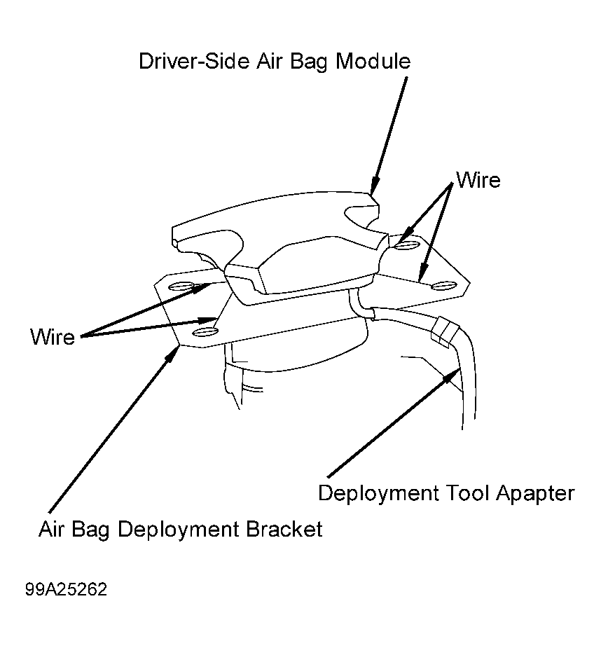 - Using wire at least 0.04" (1 mm) in diameter, attach driver-side air bag to air bag deployment bracket. See Fig 1 . Connect Air Bag Deployment Tool (J38381) to air bag module connector, using Deployment Tool Adapter (J44230).