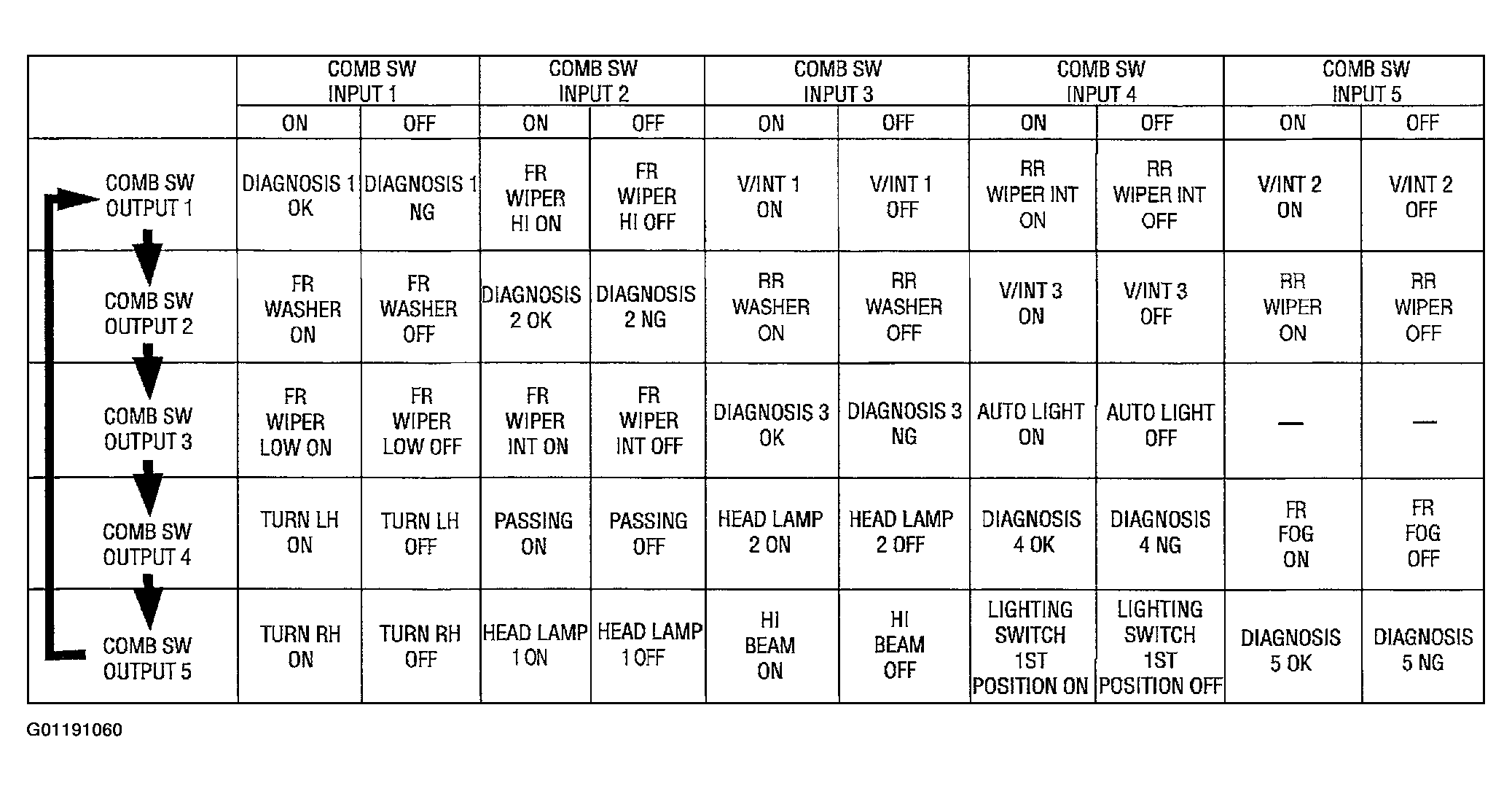 • BCM reads operation status of combination switches by the combination shown in Fig 2.