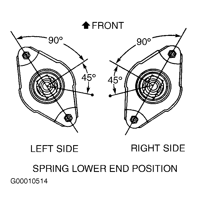 - Position coil spring onto strut assembly with flat side of coil spring upward. Ensure bottom side of coil spring is seated properly into lower spring seat on strut.