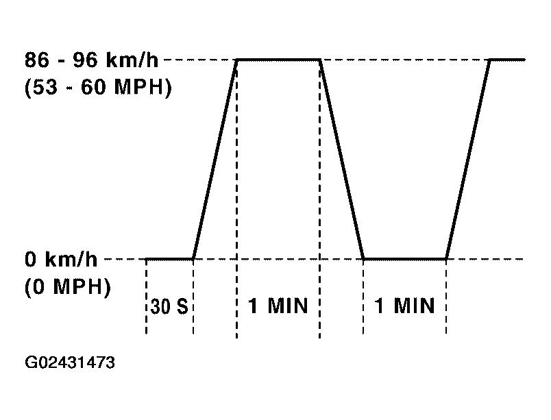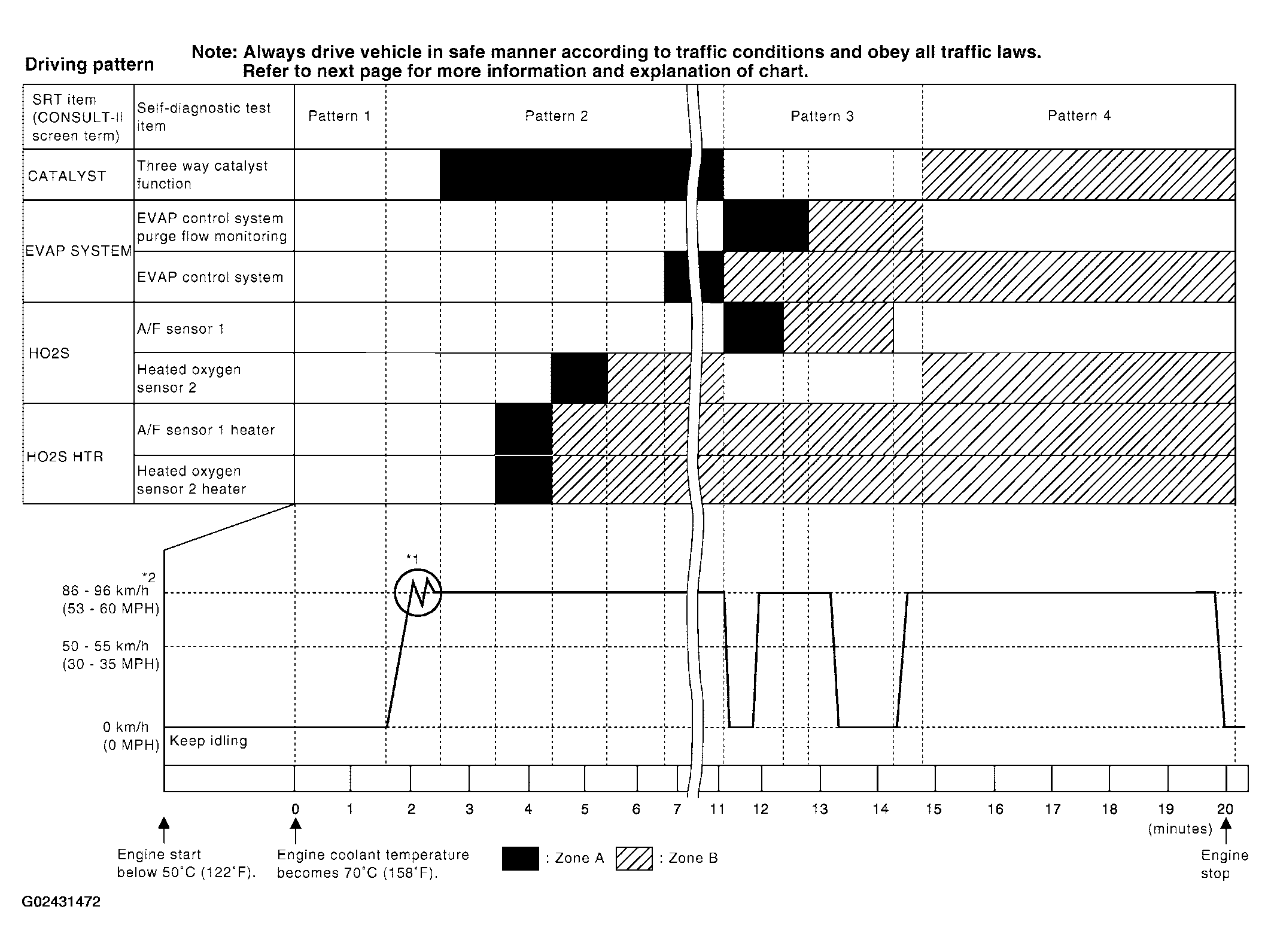 * 1: Depress the accelerator pedal until vehicle speed is 90 km/h (56 MPH), then release the accelerator pedal and keep it released for more than 10 seconds. Depress the accelerator pedal until vehicle speed is 90 km/h (56 MPH) again.