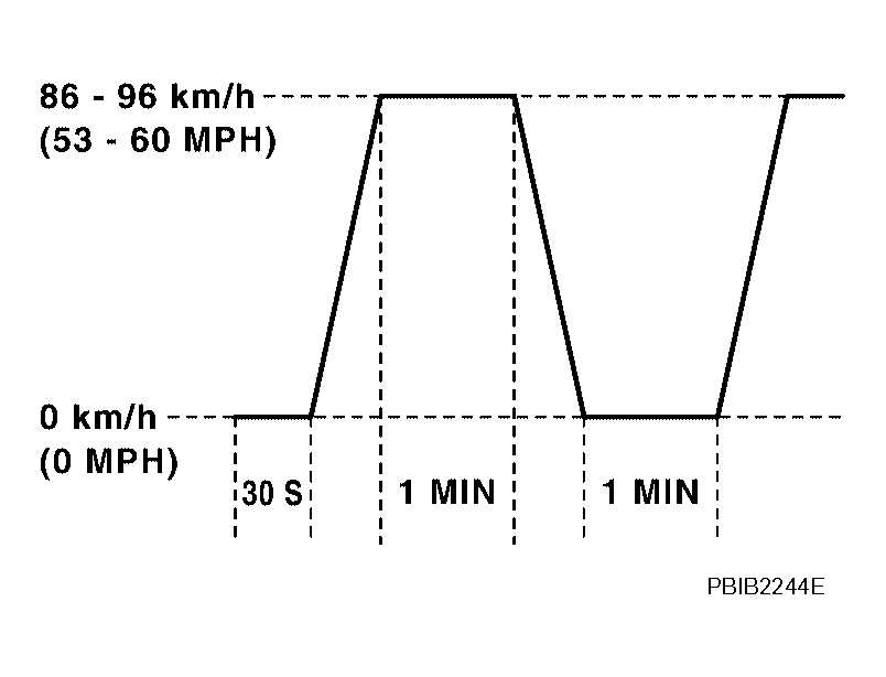 *1: Depress the accelerator pedal until vehicle speed is 90 km/h (56 MPH), then release the accelerator pedal and keep it released for more than 10 seconds. Depress the accelerator pedal until vehicle speed is 90 km/h (56 MPH) again.