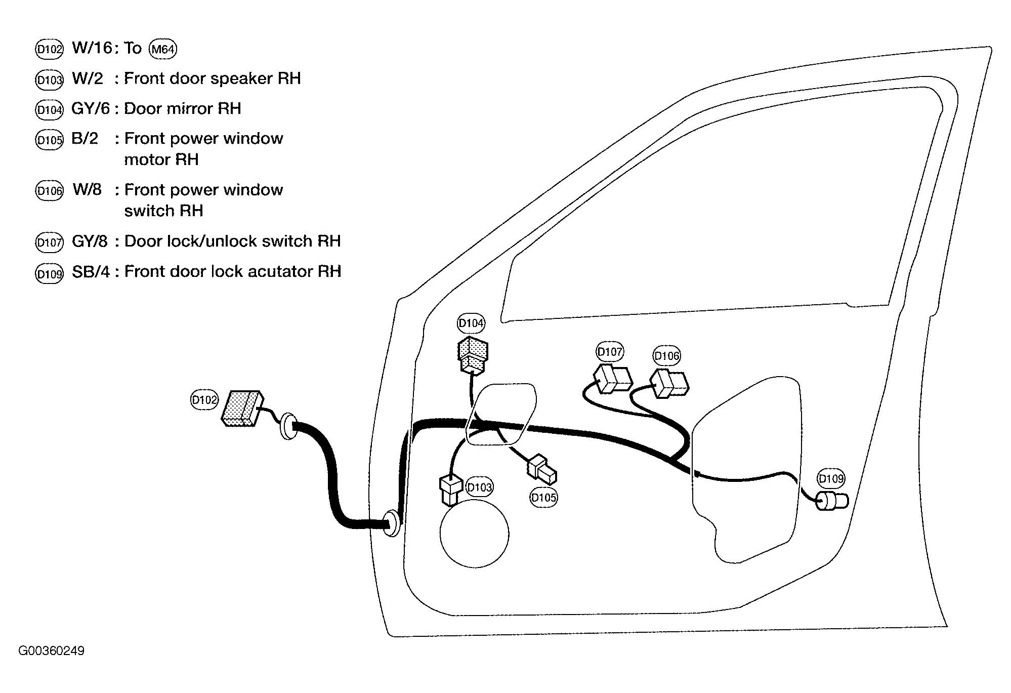 | D102 (White, 16 Pin) | Behind right kick panel. See Figure . |