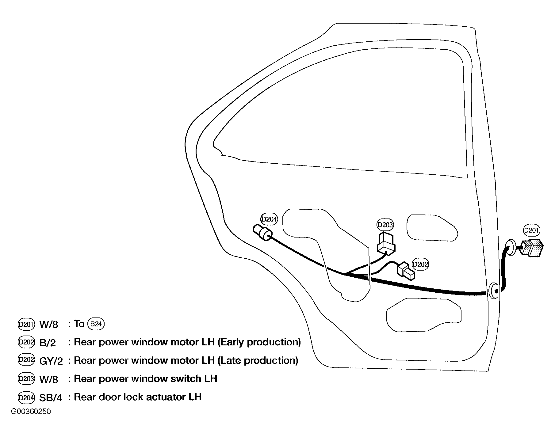 | D201 (White, 8 Pin) | Left "B" pillar. See Figure . |