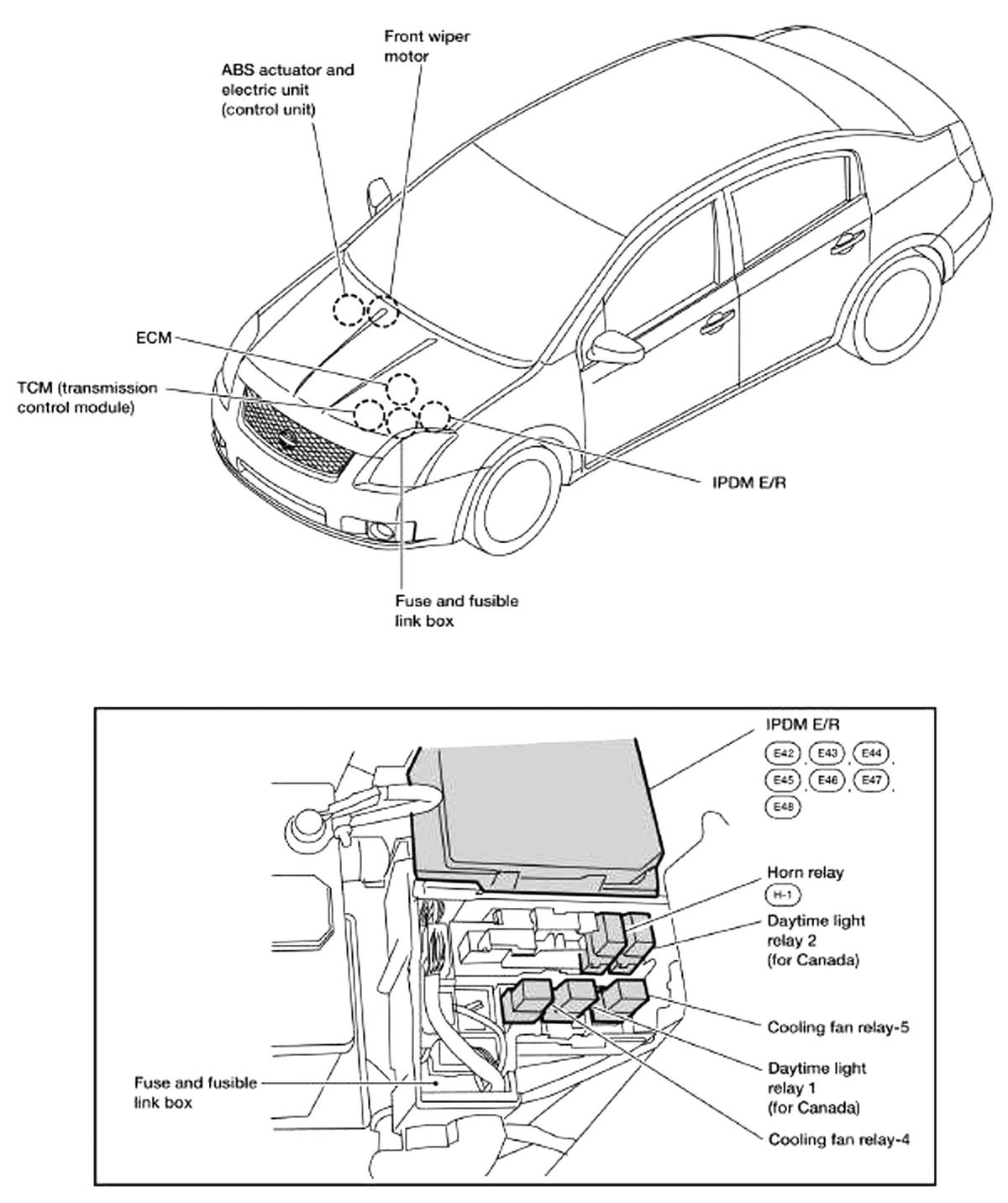 | ABS Actuator & Electric Unit (Control Unit) | Right rear of engine compartment. See Figure. |