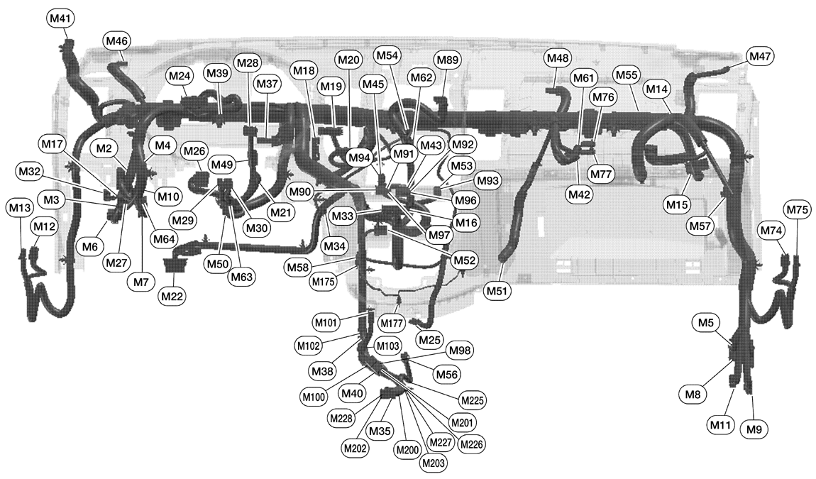 | Fan Control Amp. (M52) | Behind right side of dash. See Figure. |