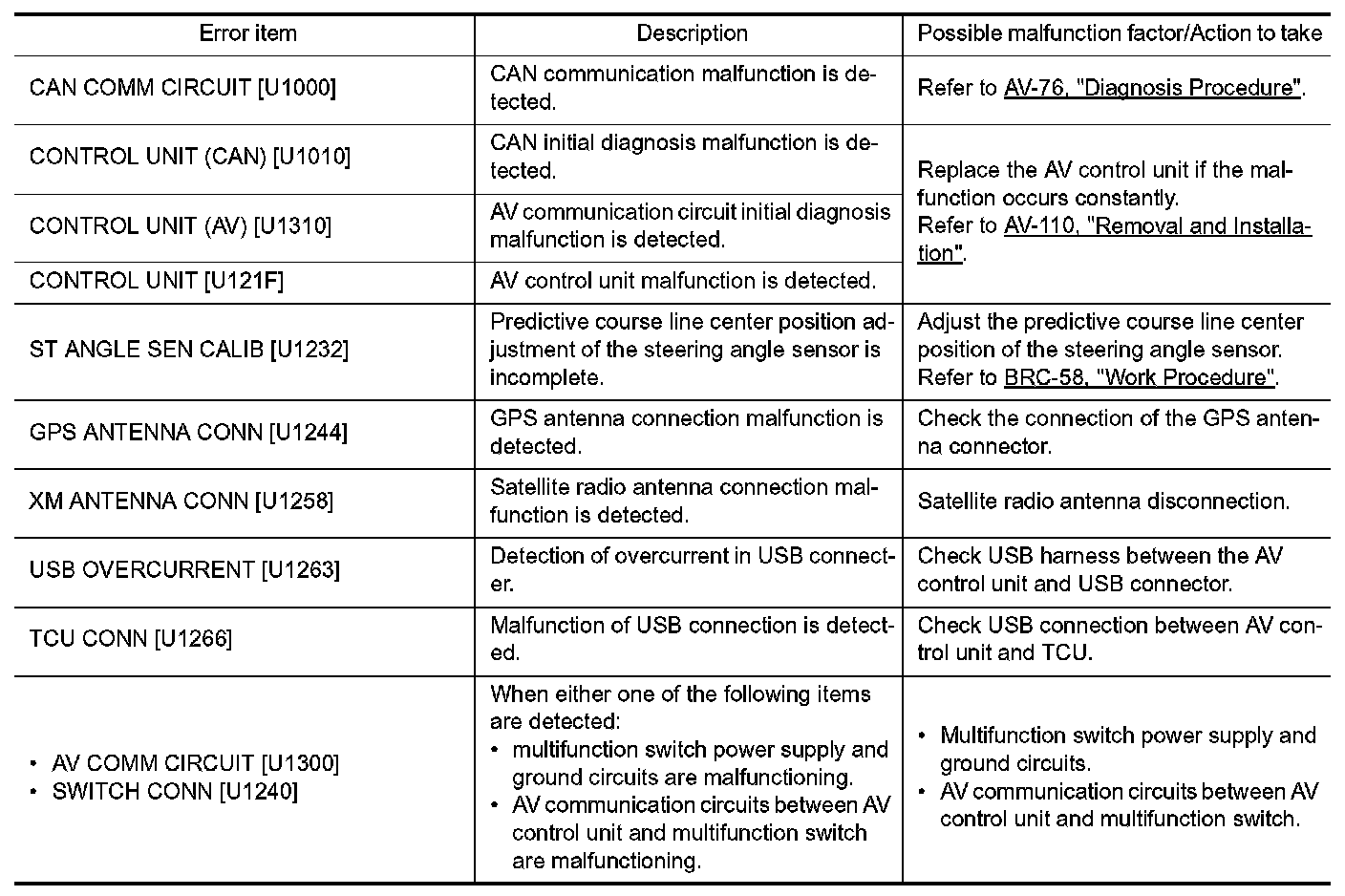 DIAGNOSIS SYSTEM (AV CONTROL UNIT)