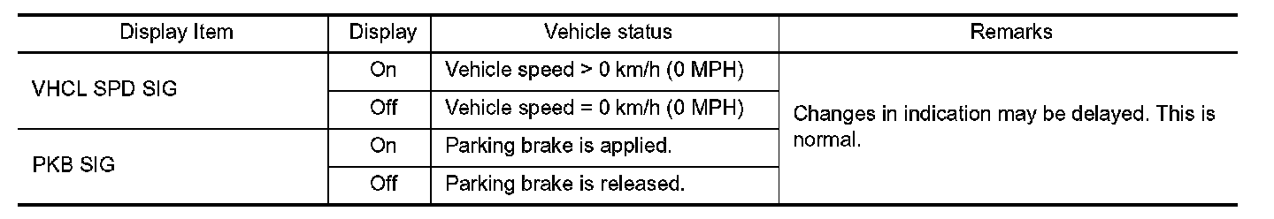 - Displays the status of the following vehicle signals inputted into the AV control unit.