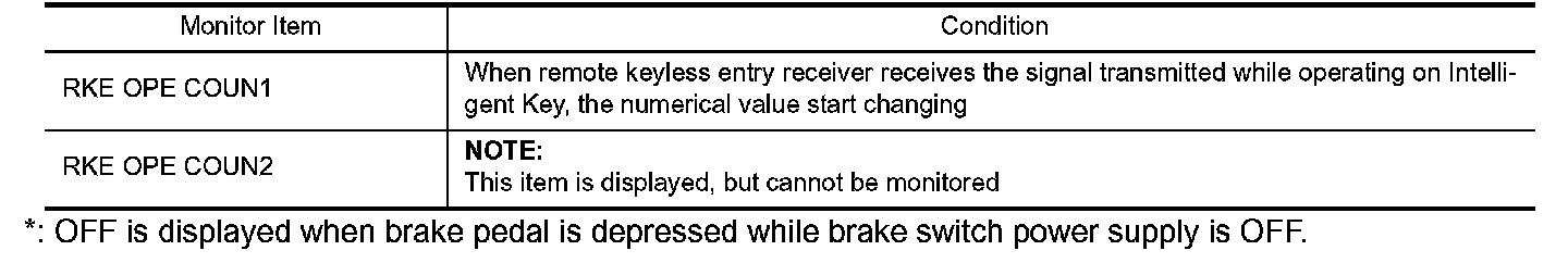 *: OFF is displayed when brake pedal is depressed while brake switch power supply is OFF.