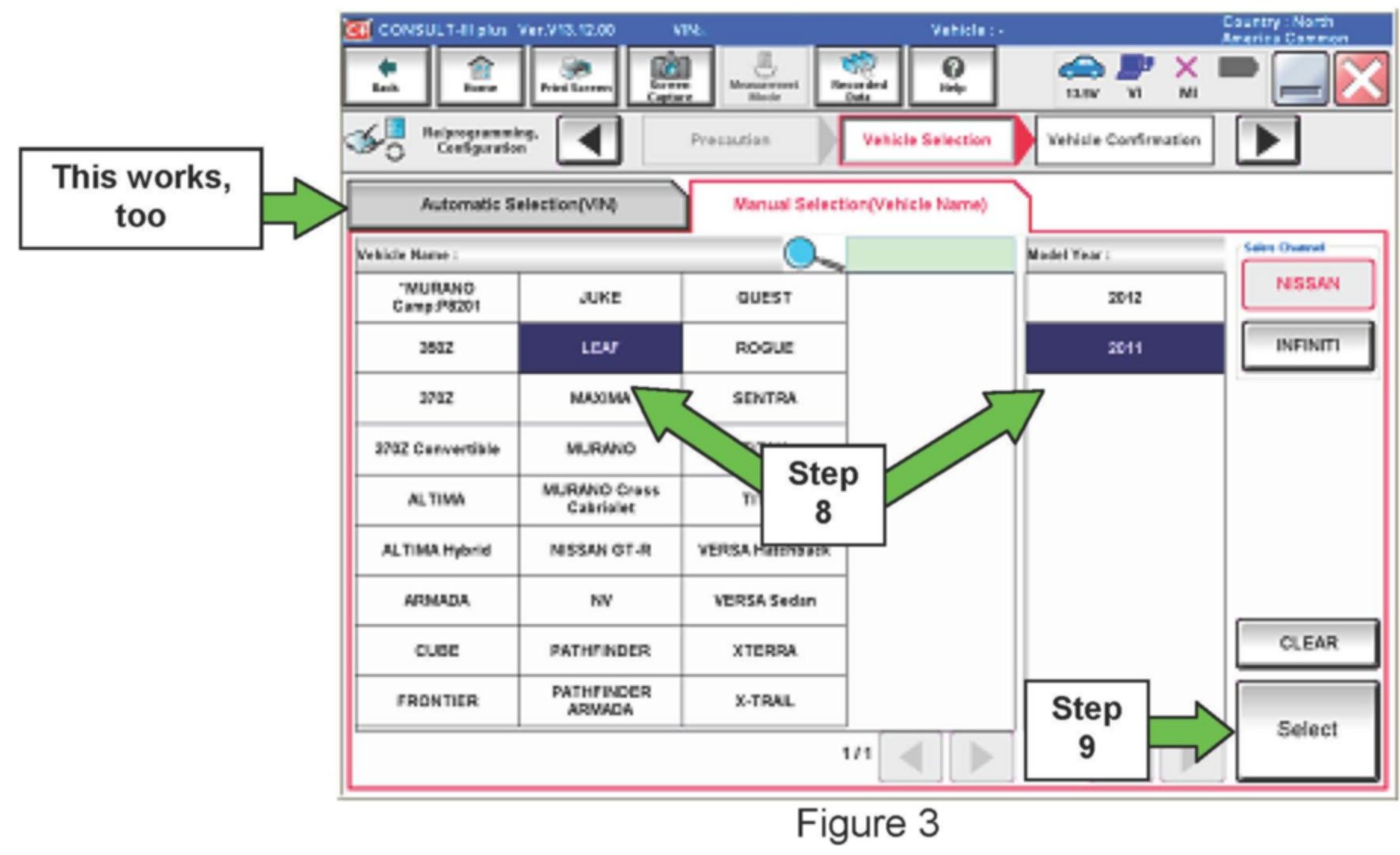 8. Select LEAF and 2011 or Automatic Selection (VIN).