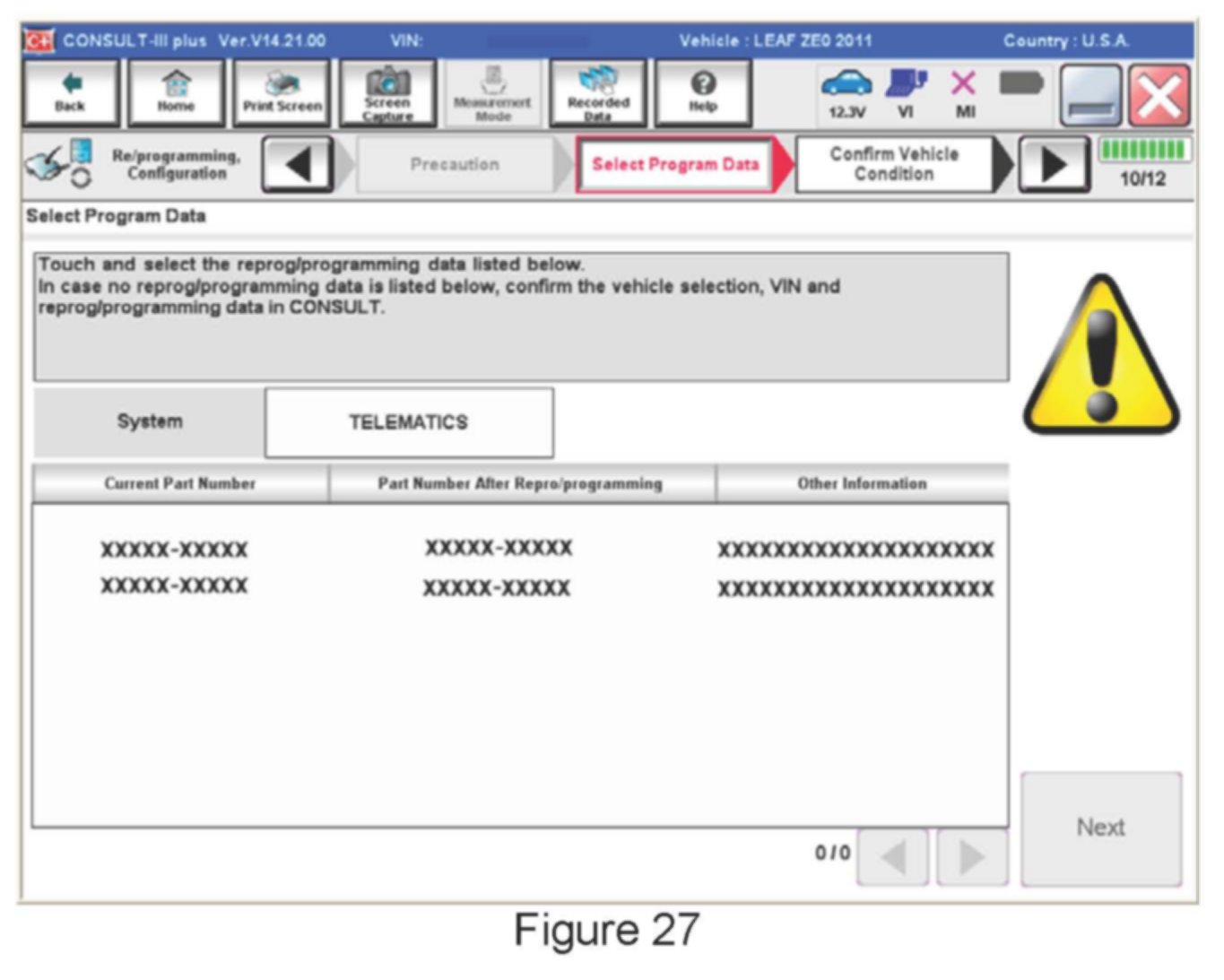 Home >> Nissan-Datsun >> 2011 >> Leaf ELE-Electric Engine >> Repair and Diagnosis >> Electric Drive Systems >> Control Module >> Technical Service Bulletins >> Recalls >> Campaign P1273 - Software Updates >> Service Procedure - Reprogram VCM, TCU and LBC >> Part 3