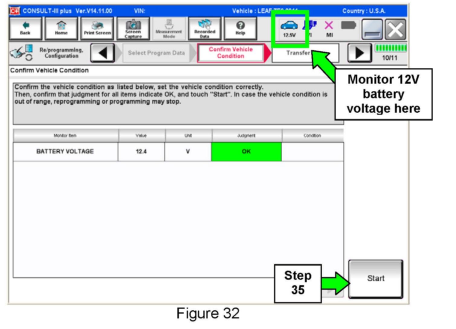 35. With battery voltage in the green, select Start.