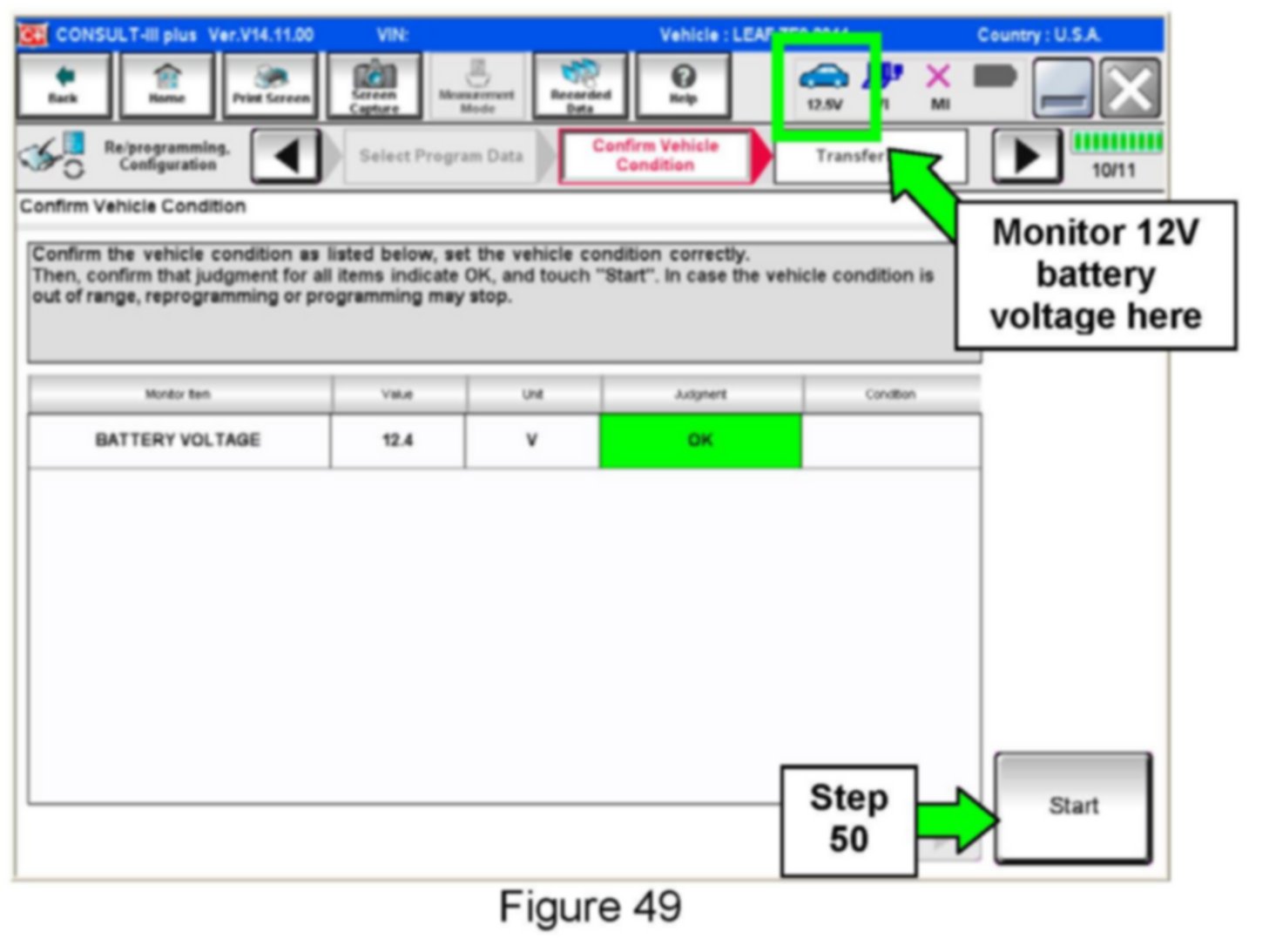 50. With battery voltage in the green, select Start.