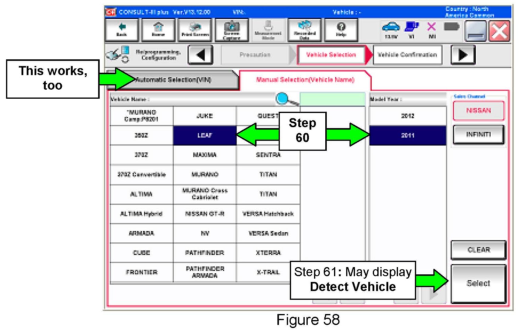 60. Select LEAF and 2011 or Automatic Selection (VIN).
