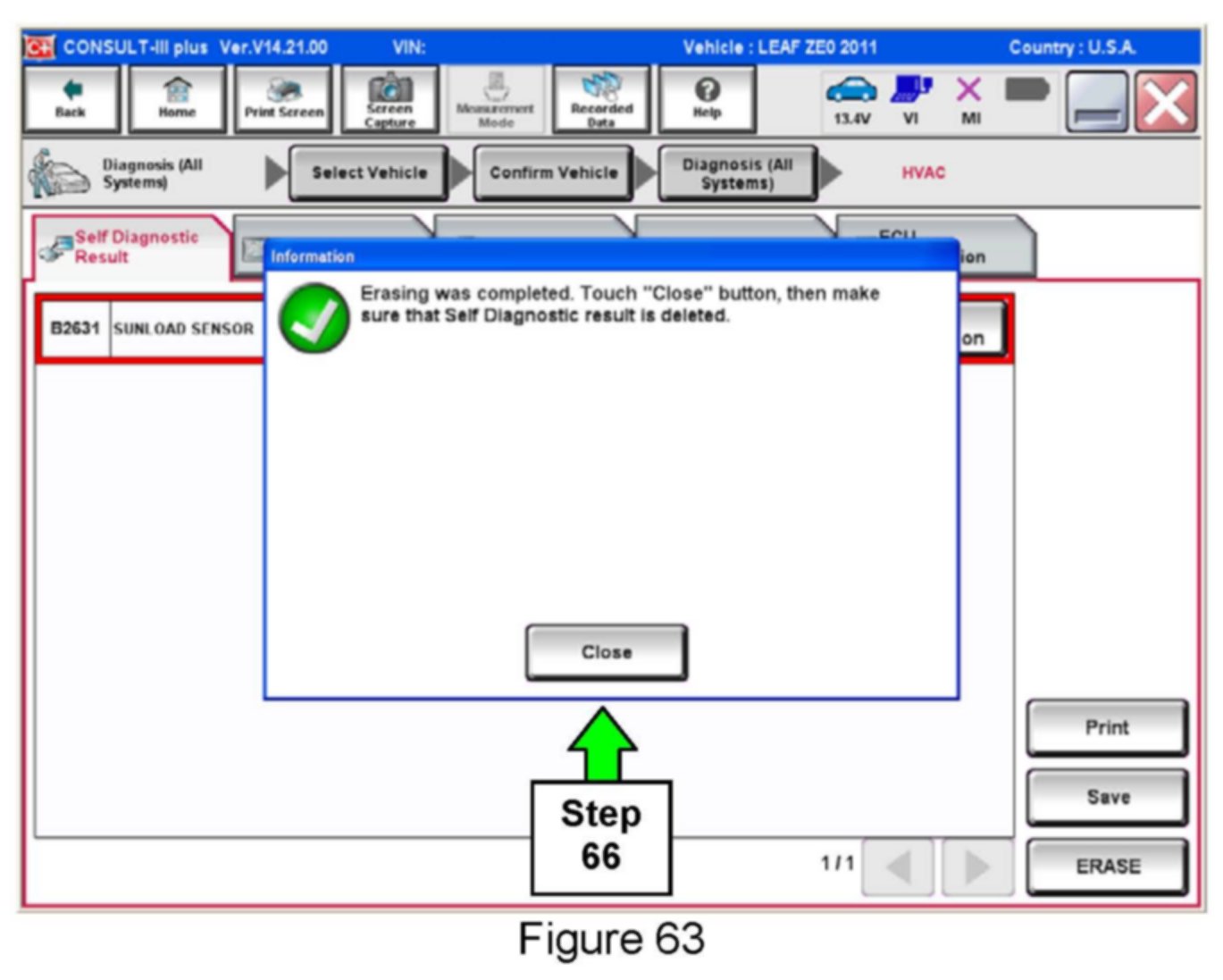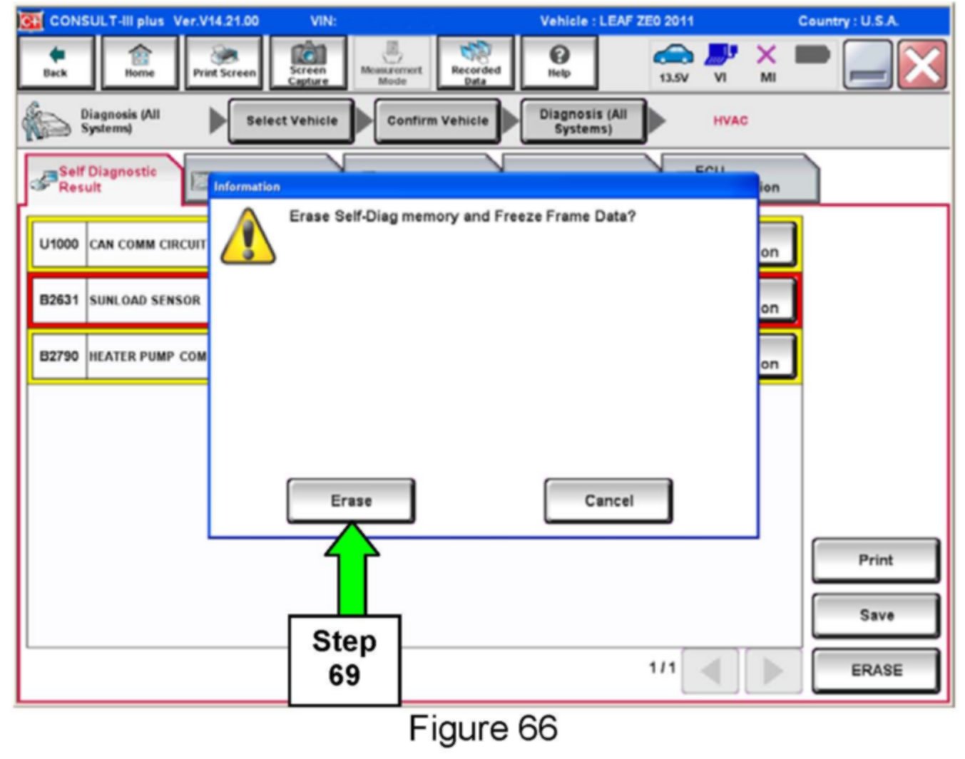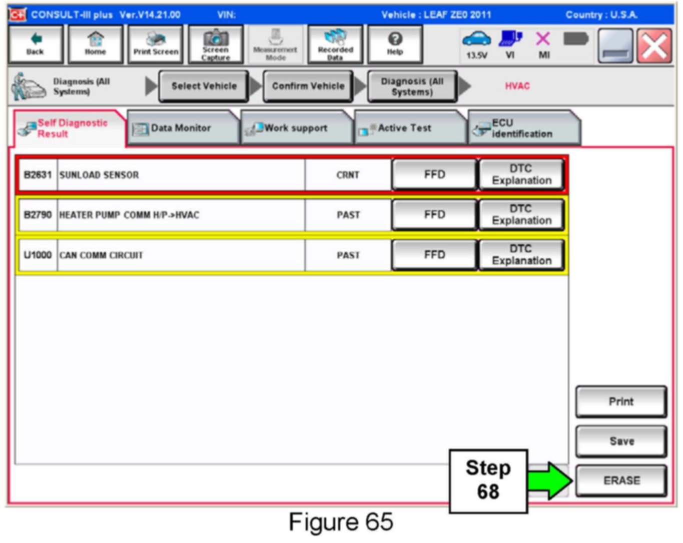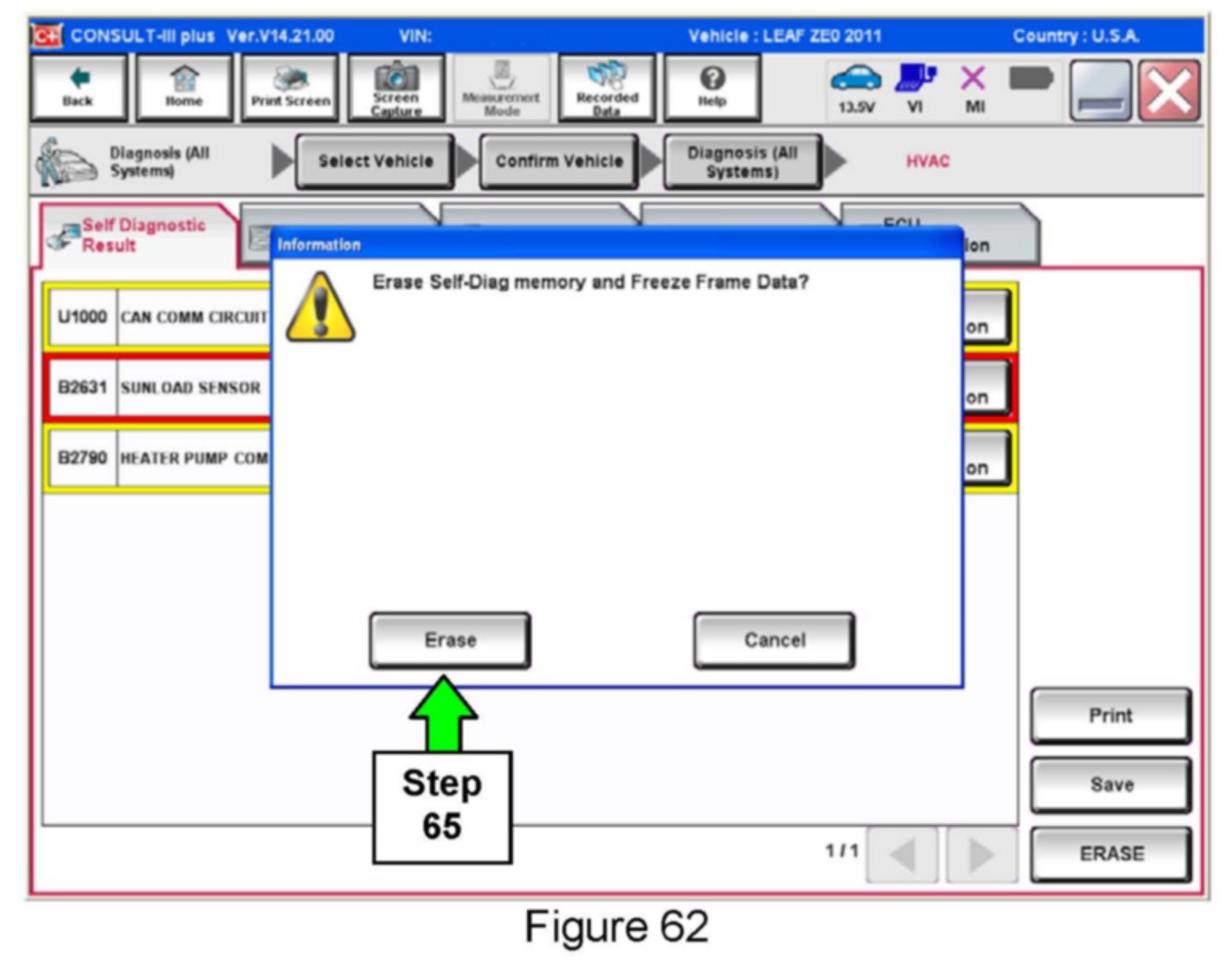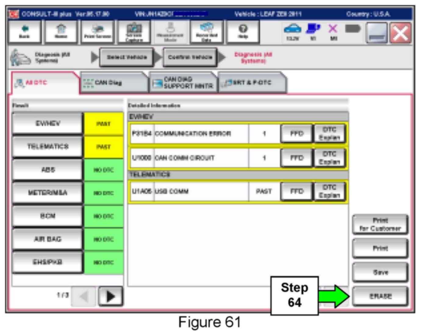 64. If DTCs are present, select ERASE.