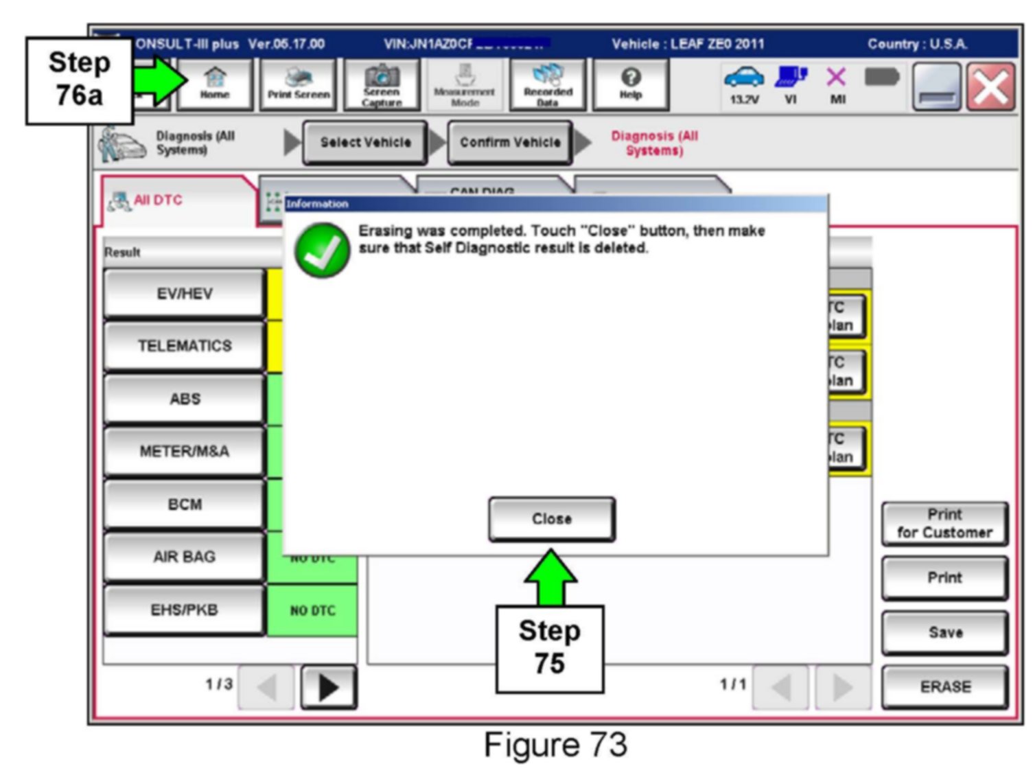76. Once all DTCs have been erased: