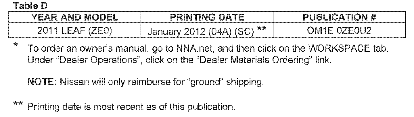^ The new owners manual was printed on or after the date in Table D