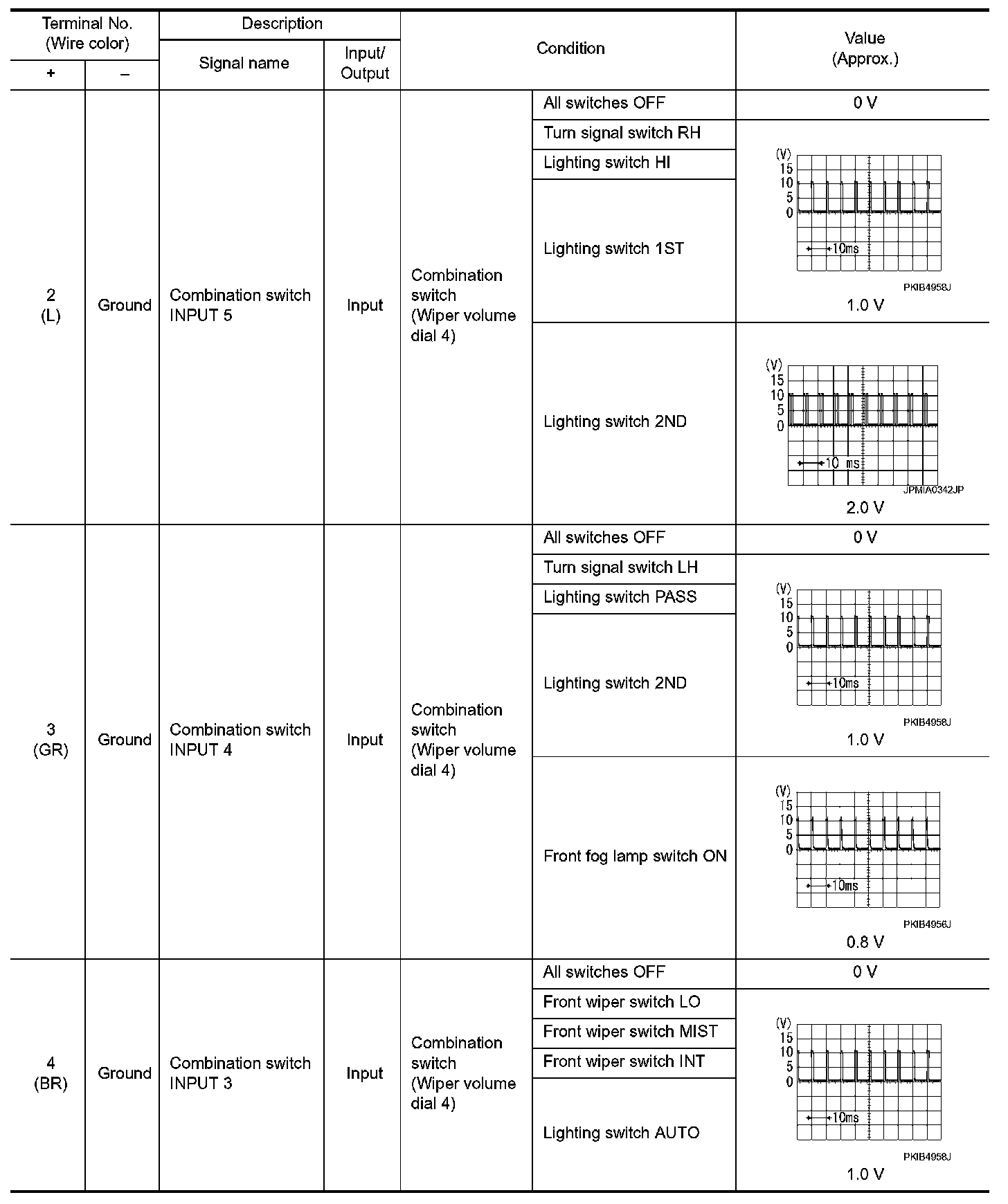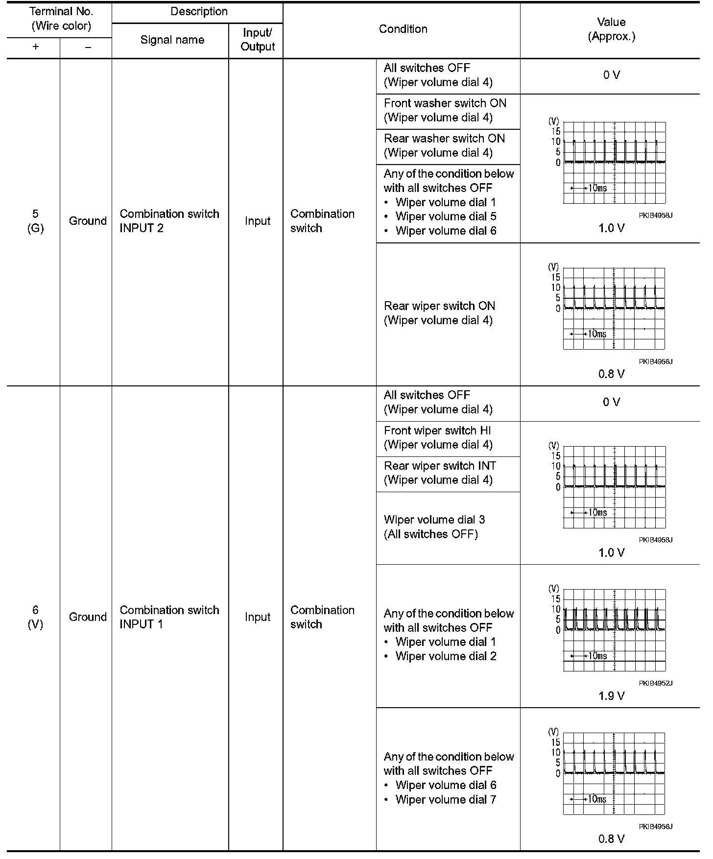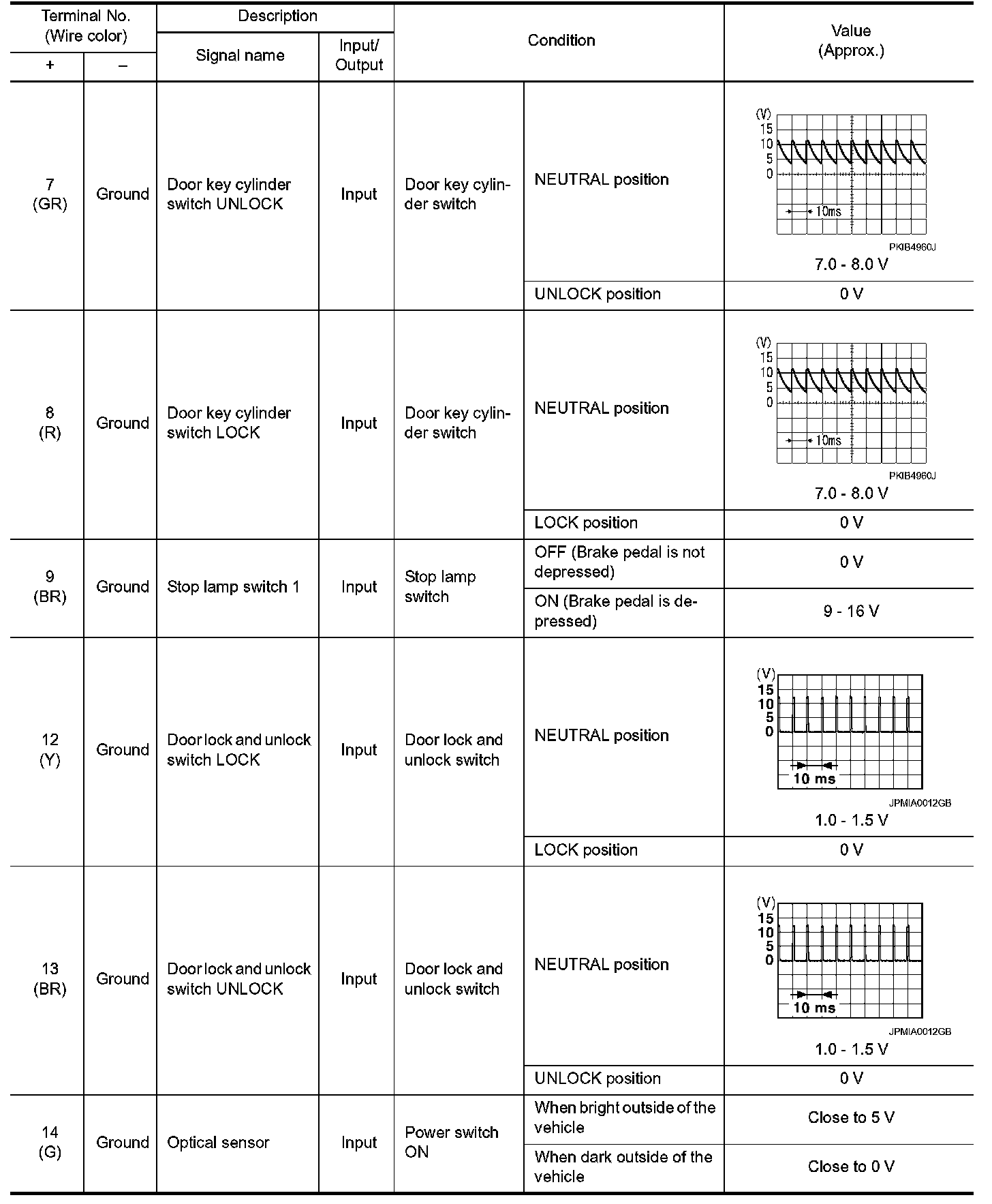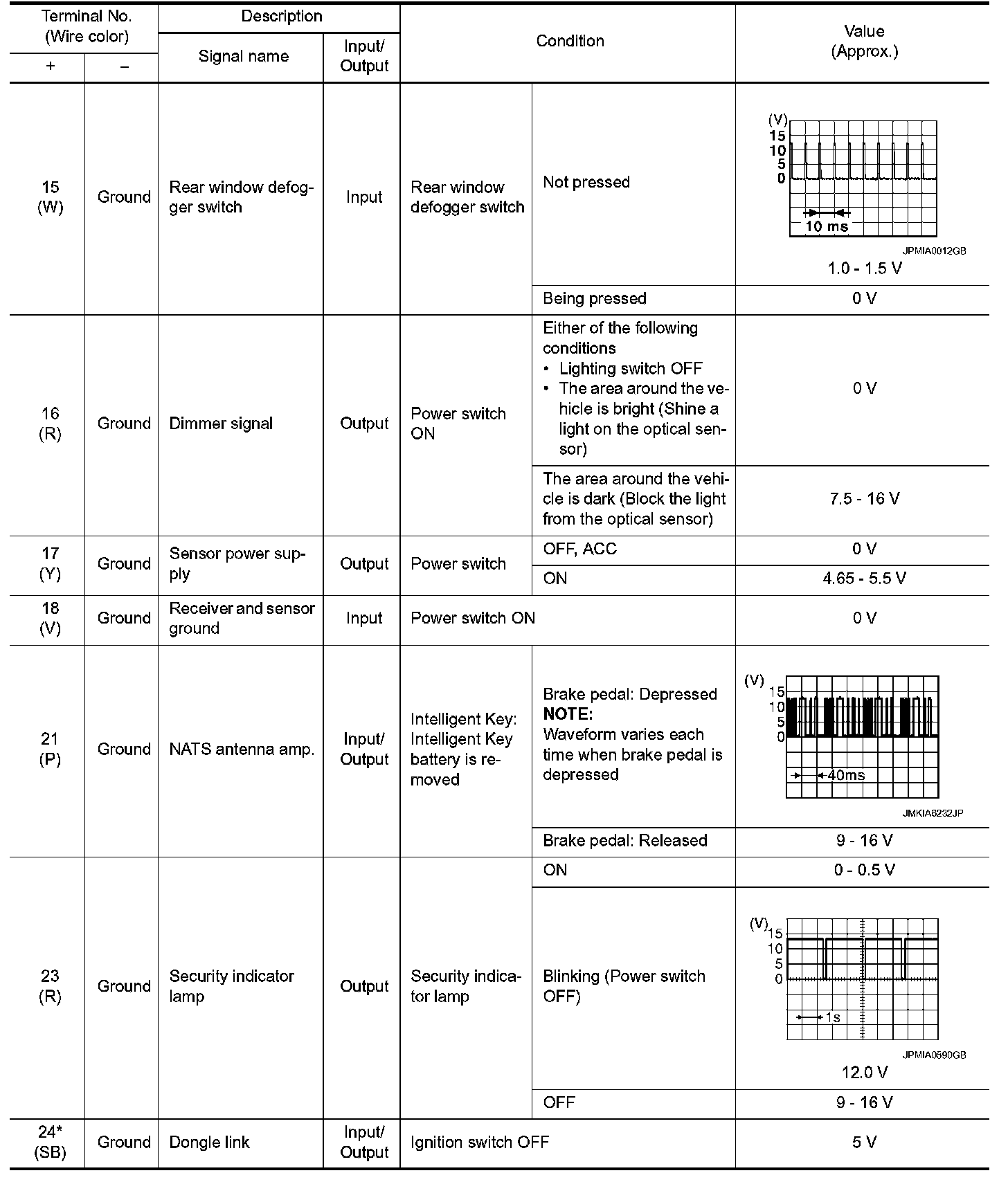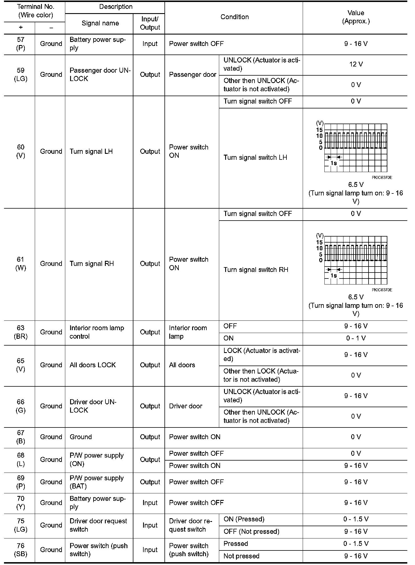 Pinout Values and Diagnostic Parameters