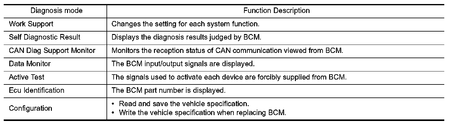 COMMON ITEM : CONSULT Function (BCM - COMMON ITEM)