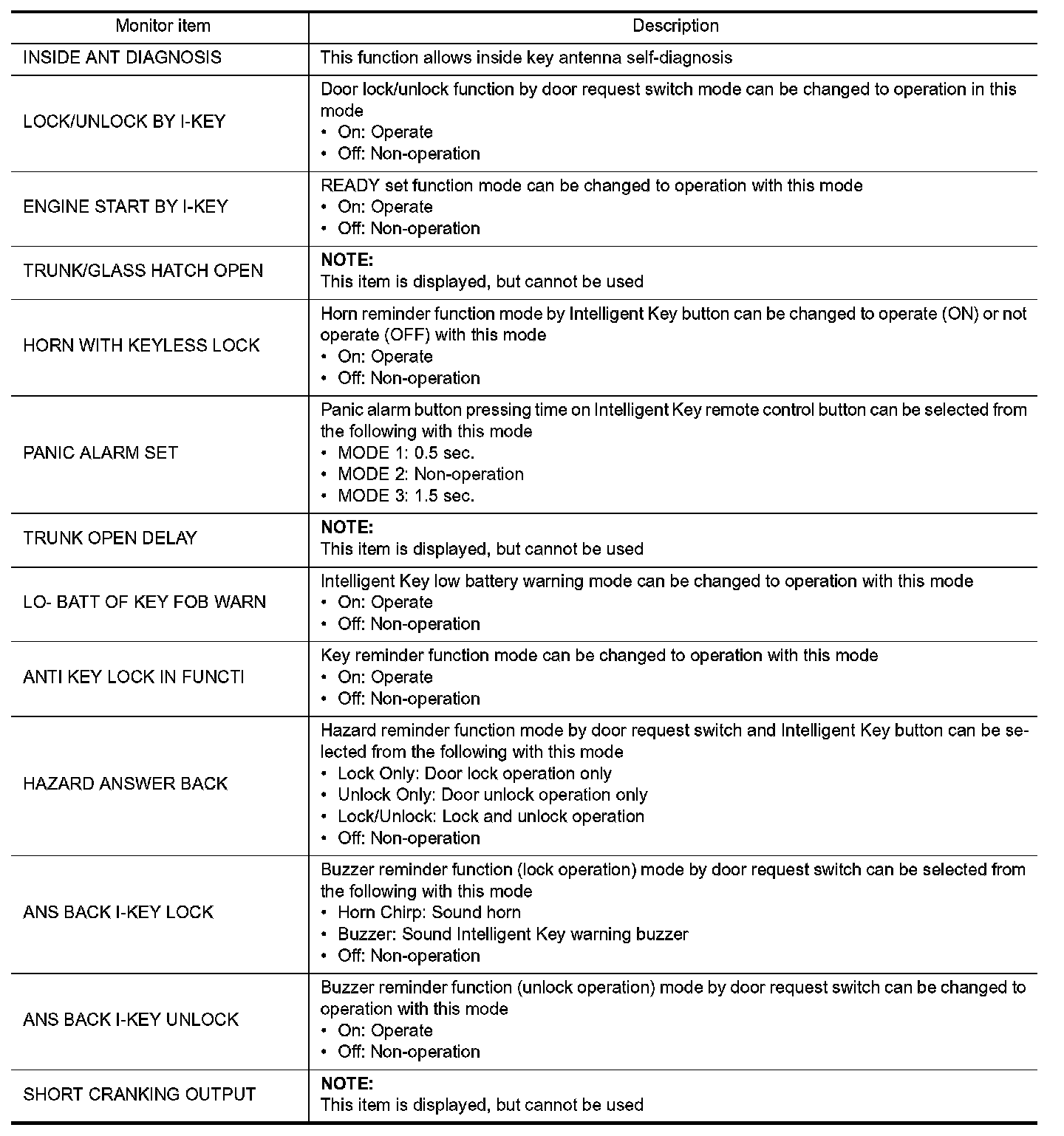 INTELLIGENT KEY : CONSULT Function (BCM - INTELLIGENT KEY)
