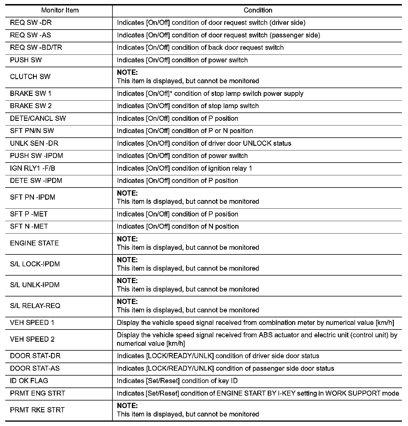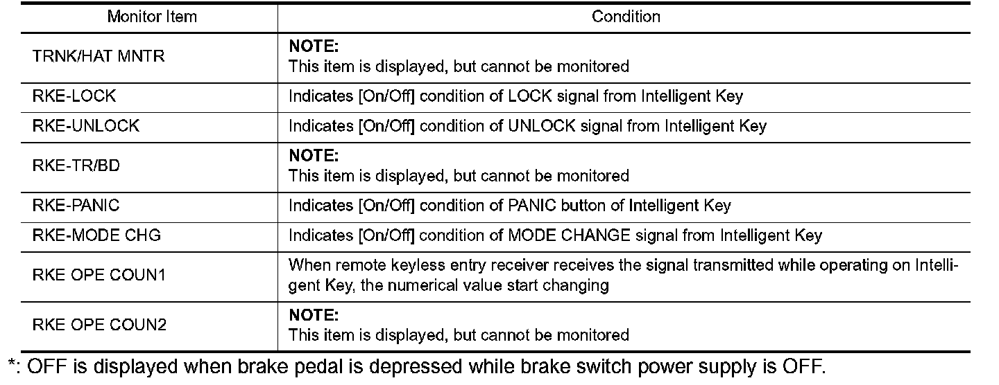*: OFF is displayed when brake pedal is depressed while brake switch power supply is OFF.