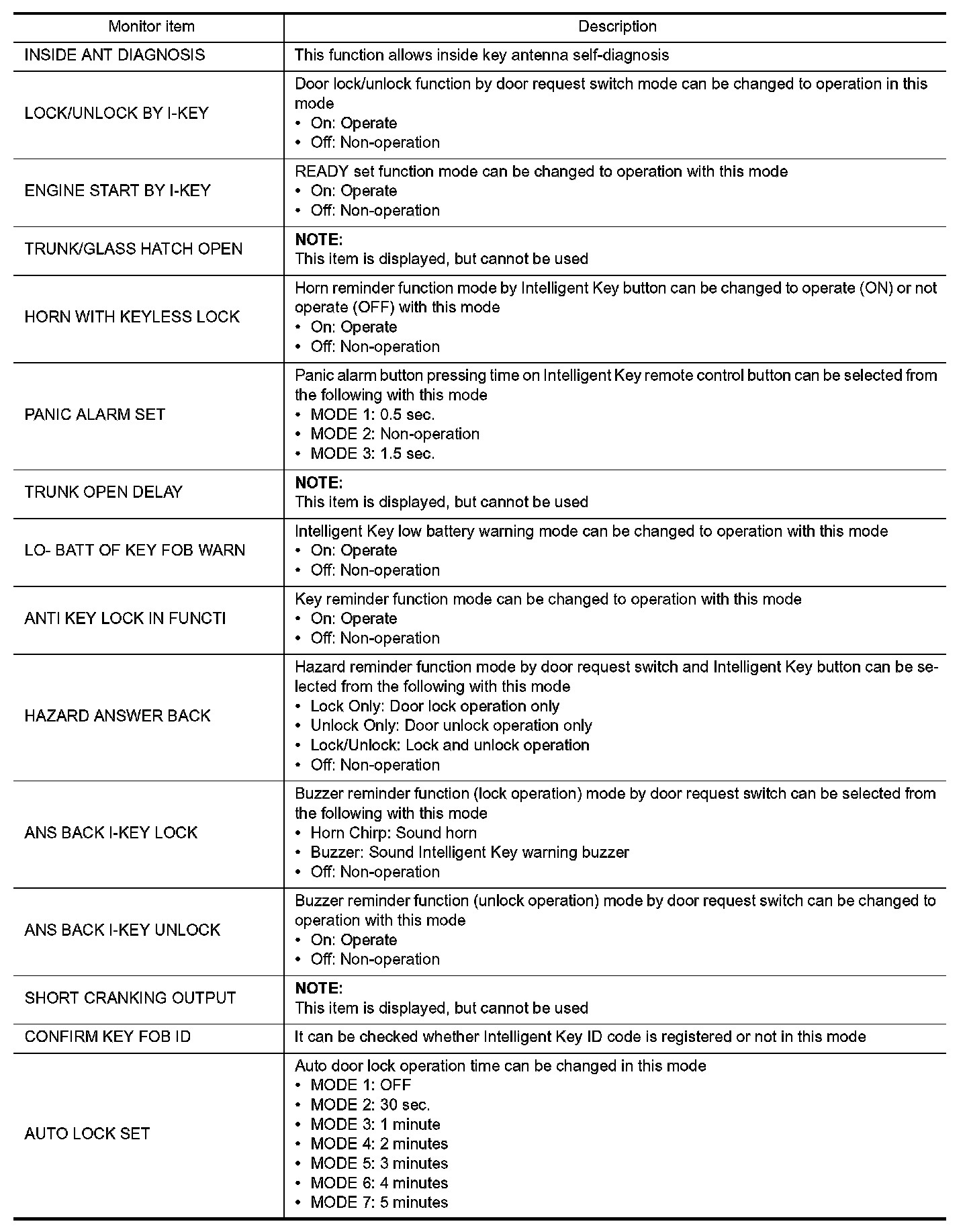 INTELLIGENT KEY : CONSULT Function (BCM - INTELLIGENT KEY)