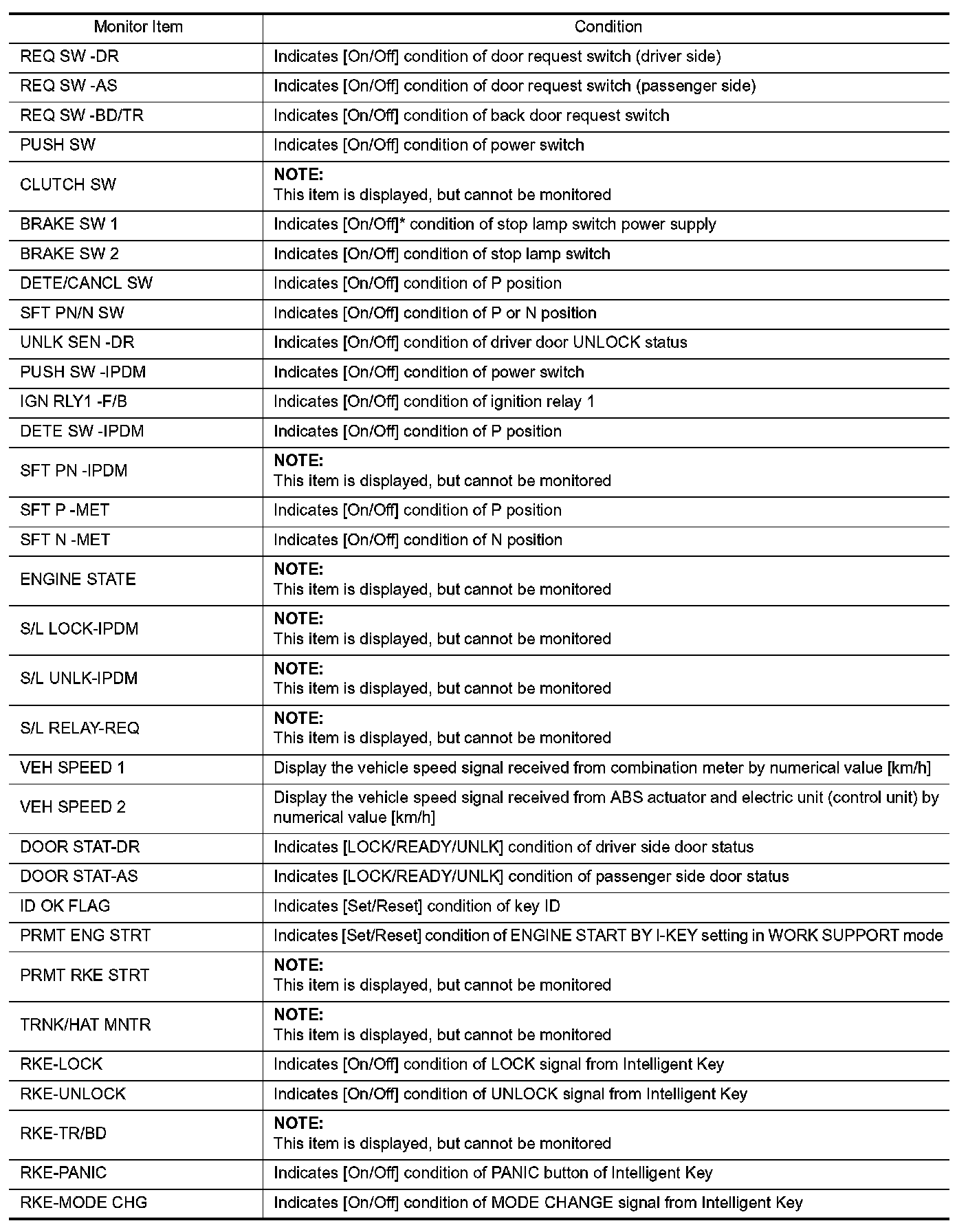 *: OFF is displayed when brake pedal is depressed while brake switch power supply is OFF.