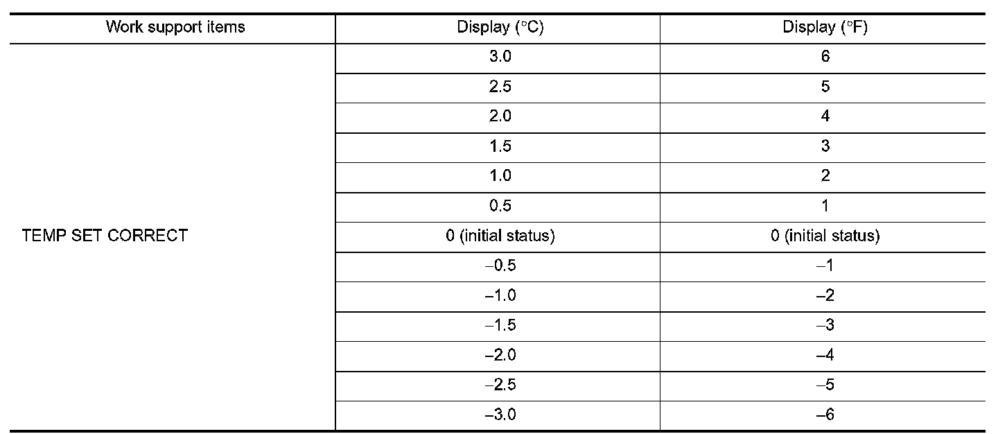 Perform "TEMP SET CORRECT" of HVAC work support item.