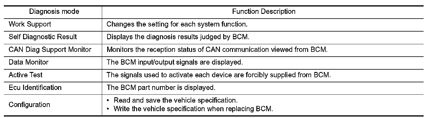 CONSULT performs the following functions via CAN communication with BCM.