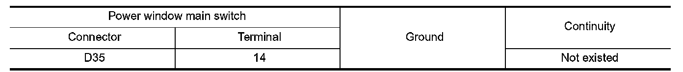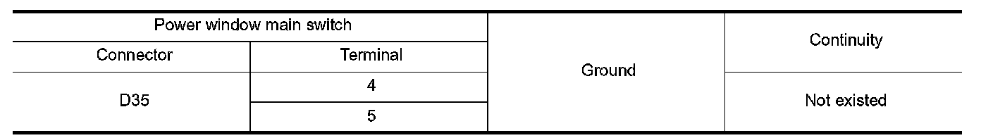 3.Check continuity between power window main switch harness connector and ground.