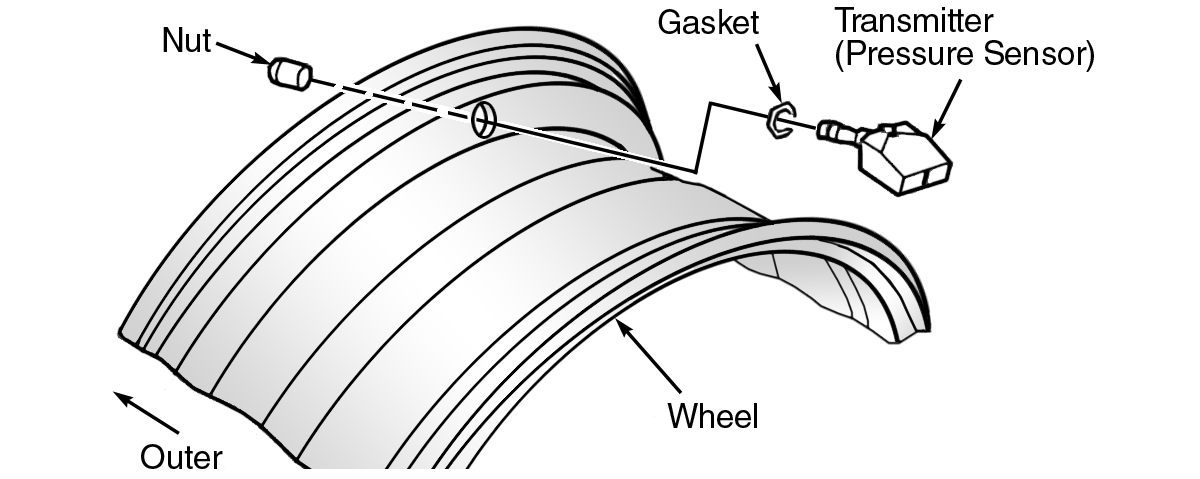 - Deflate tire. Unscrew transmitter retaining nut, and allow transmitter to fall into tire.