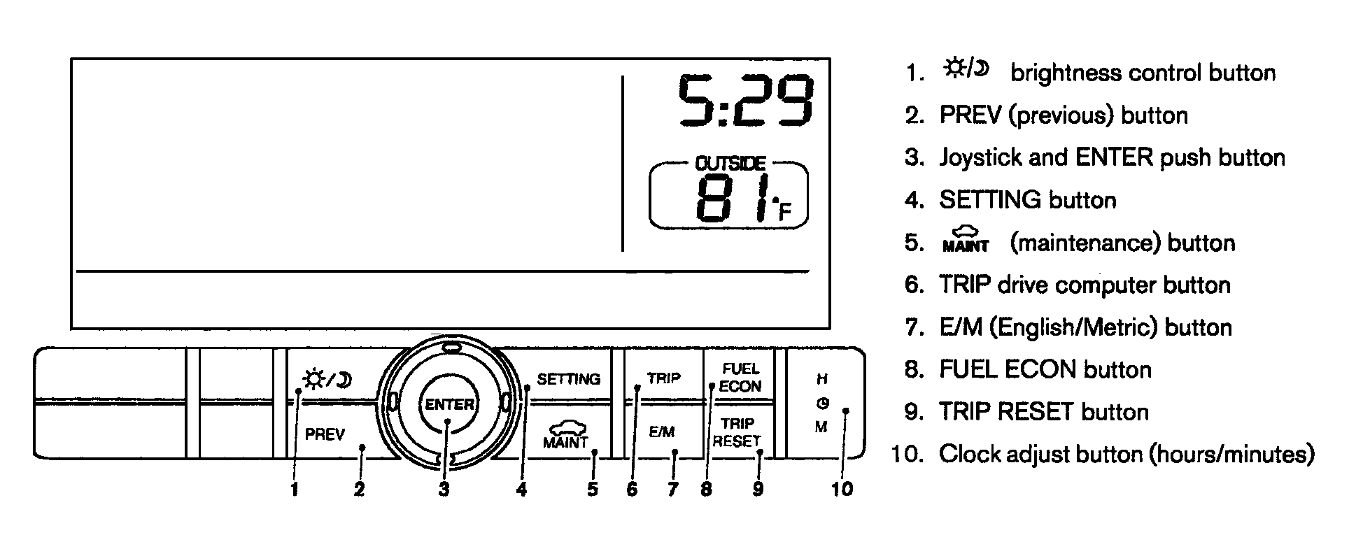 This procedure is for the Monochrome Control Panel Display. The actual layout of the control panel may appear different for different vehicles, but the key functions are similar.