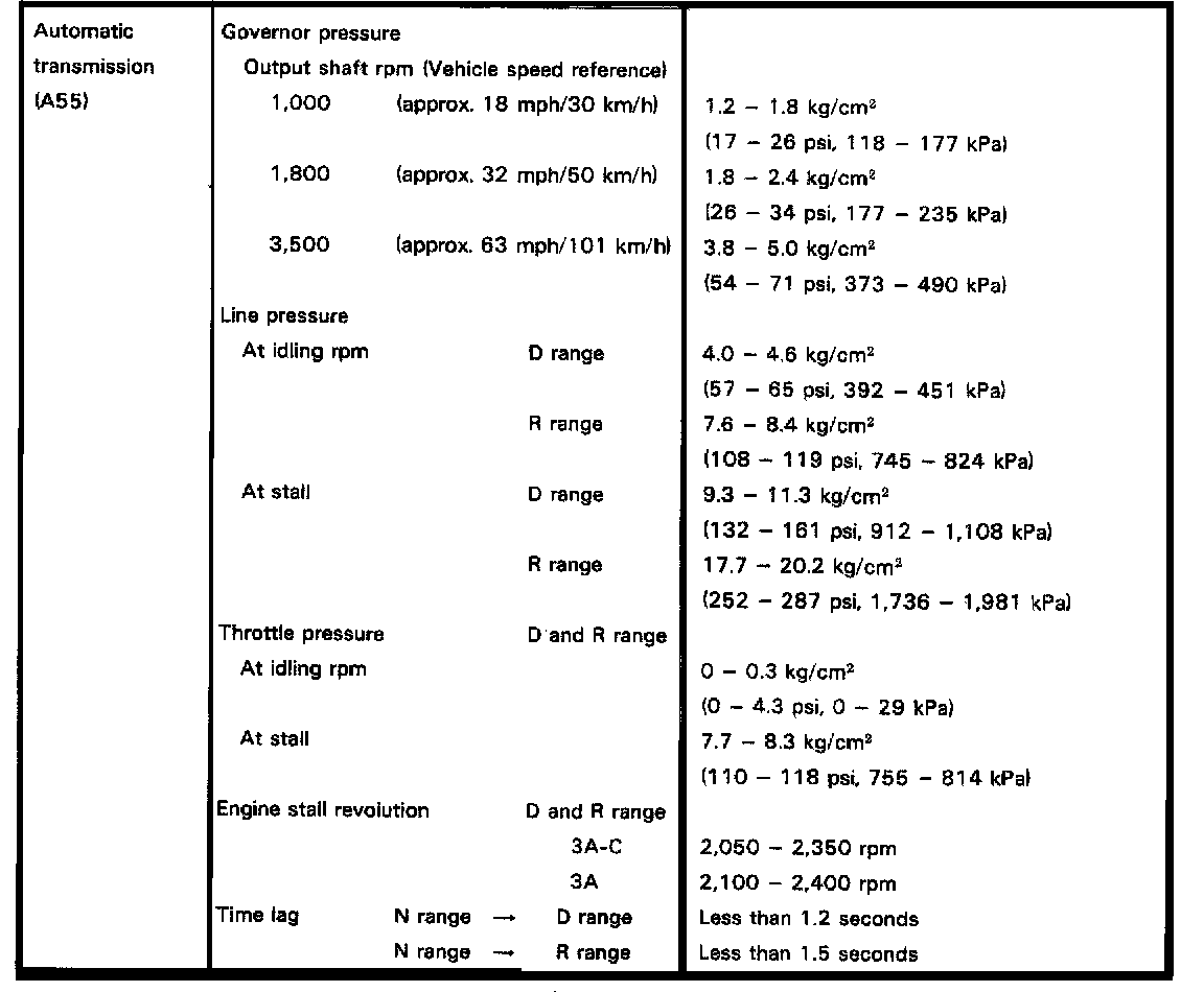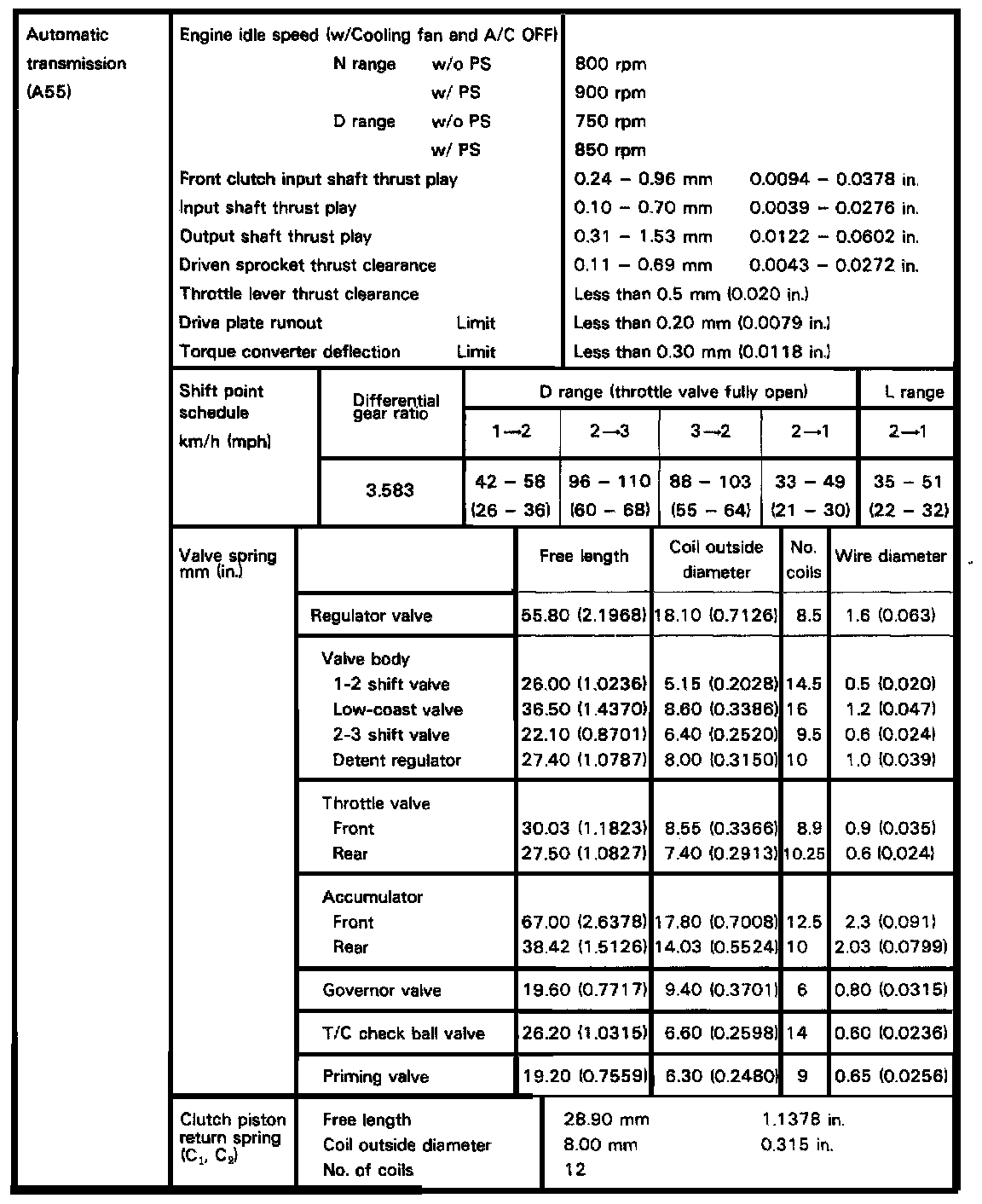 A55 3-spd A/T, Shift Point/Spring Diameters: