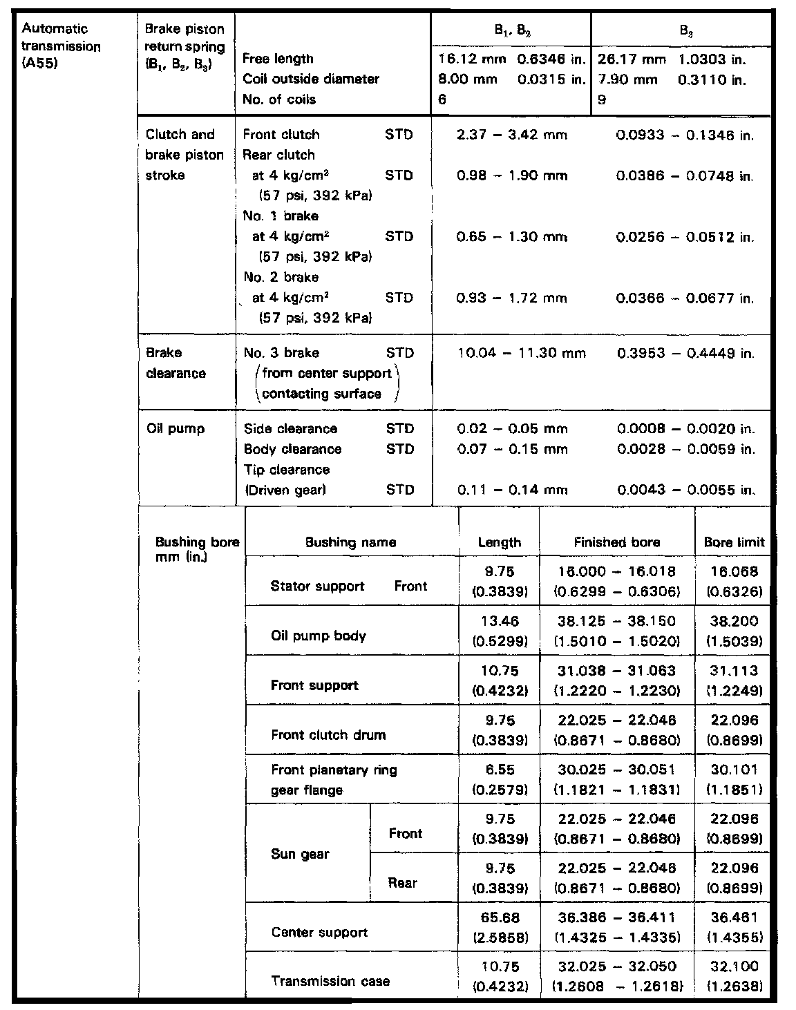 A55 3-spd A/T, Brake/Clutch Clearance: