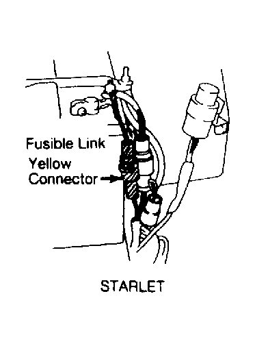 After any repairs are performed, clear ECU memory of all stored trouble codes. To clear memory, turn ignition off and remove appropriate fuse from fuse panel for 30 seconds. Disconnect fusible link on Starlet models. See Fig 1. The lower the ambient (outside) temperature, the longer the fuse (fusible link) must be left out. Replace fuse or fusible link and exit diagnostic mode.