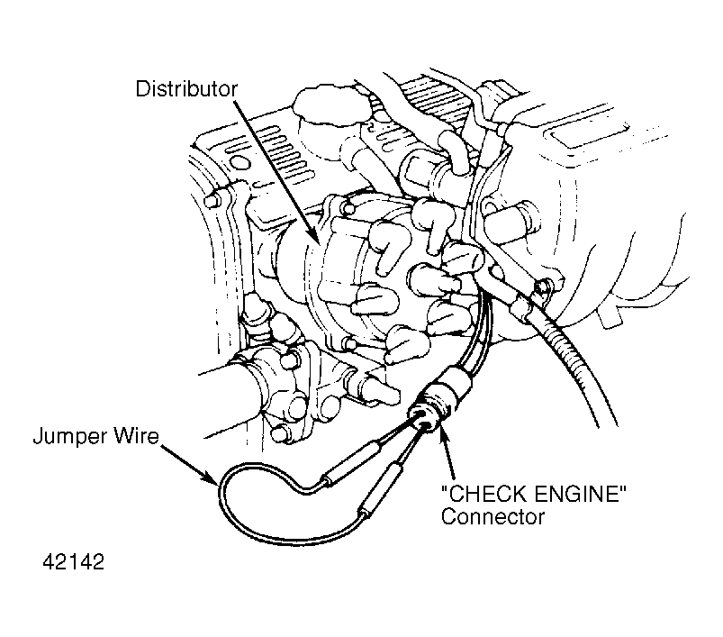 Fig 1: Jumpering "CHECK ENGINE" Connector Insert jumper wire in "CHECK ENGINE" connector.