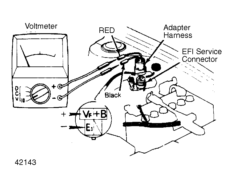 Fig 2: Connecting Voltmeter to "EFI" Connector Make sure leads are properly connected.