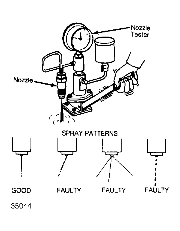 Increase pumping speed to 15-60 times per minute for used nozzle; 30-60 times per minute for new nozzles. At certain speeds, nozzle should "shudder" when spraying. Check spray pattern at this speed. If pattern is not correct, clean or replace nozzle. See Fig 1.