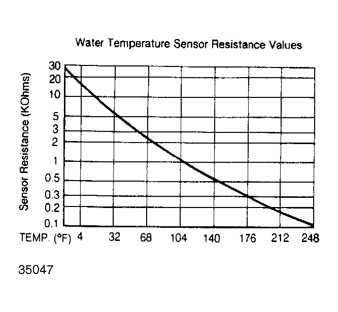 Remove connector and connect ohmmeter leads to water temperature sensor terminals. If resistance does not agree with graph, replace sensor. See Fig 1.