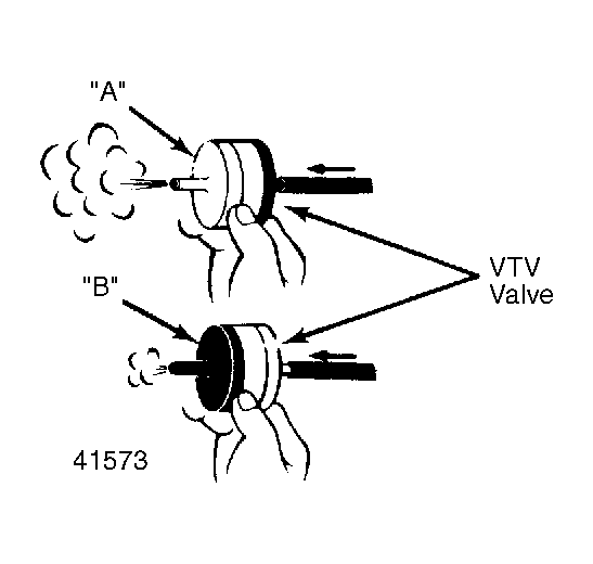 Blow air through each side of valve. Air should pass freely from side B to side A, but air should pass with difficulty from side A to B. See Fig 1.
