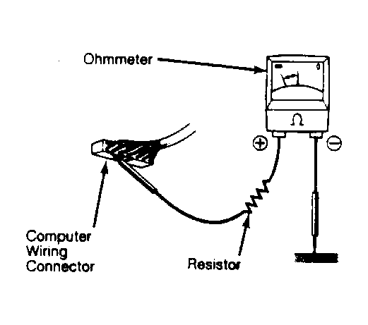 1. Block vehicle and raise 1 rear wheel off the ground. Release parking brake and place transmission in Neutral. Disconnect wiring connector from computer, located at left kick panel.