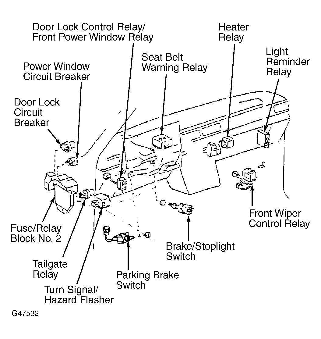 | Fuse/Relay Block No. 1 | Under Left Side Of Dash. See Figure. | |